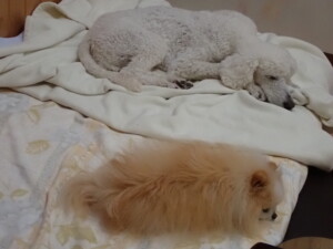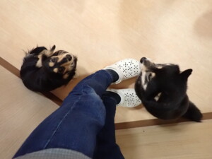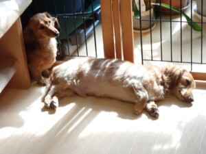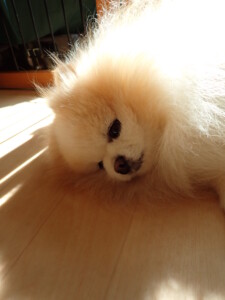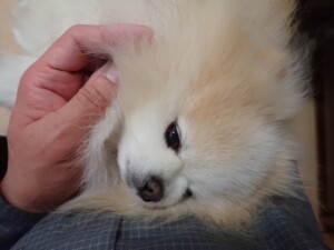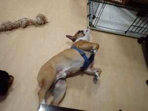 ふじまる君、昨夜はお泊まりでした。機嫌よく過ごしていました。