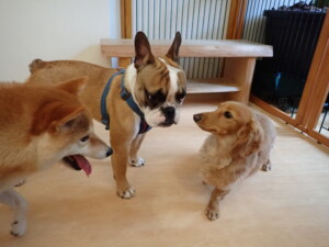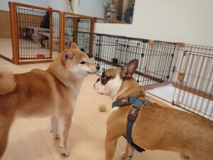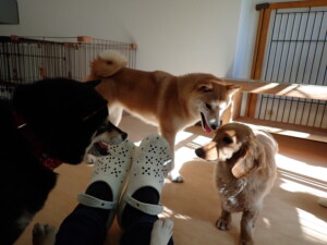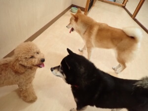 今日は二瑚ちゃん、三瑚君、こまちゃん、まる君、あずきちゃん、メリィちゃんが遊びに来てくれました。そして、アントニー君、がトレーニングに来てくれました。