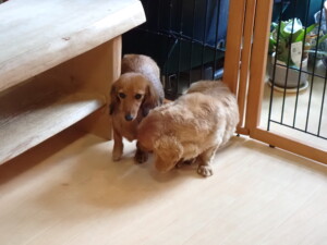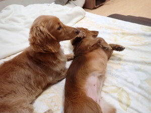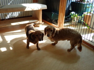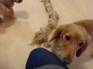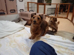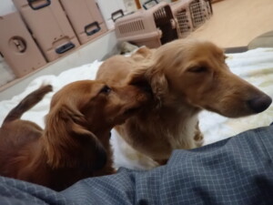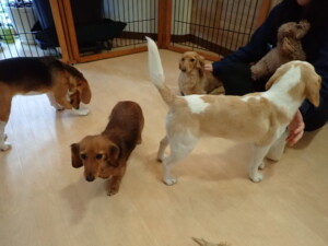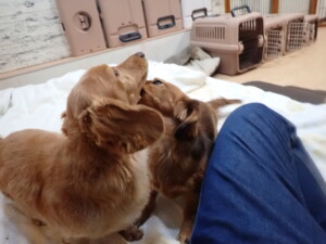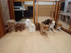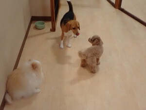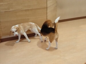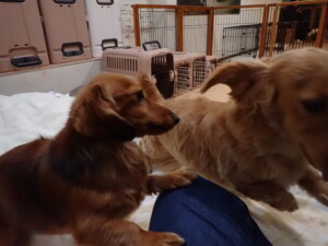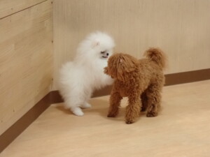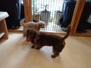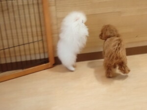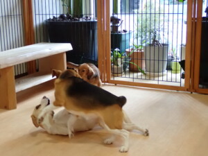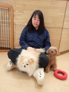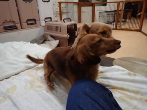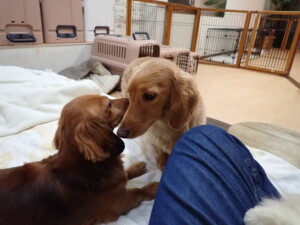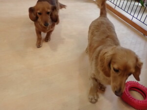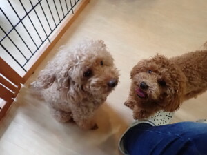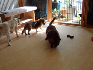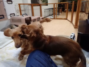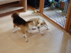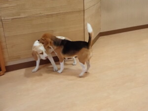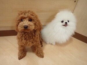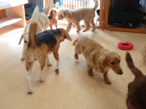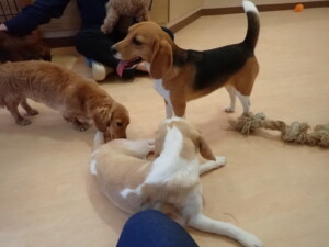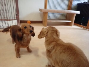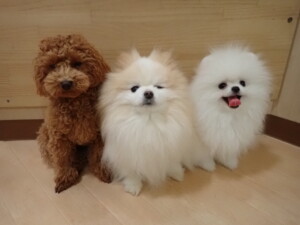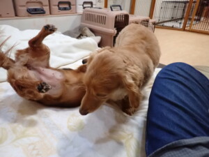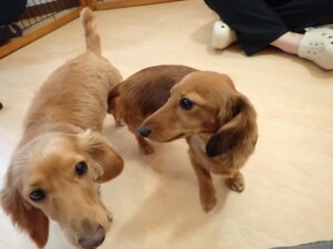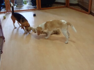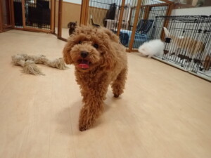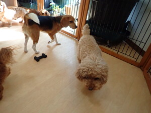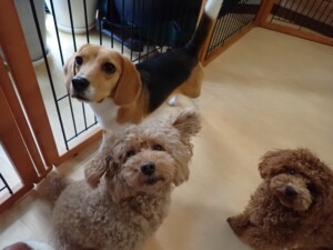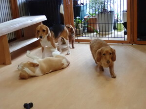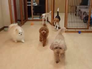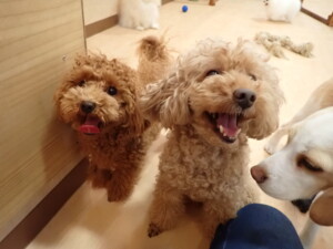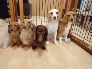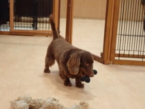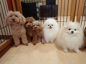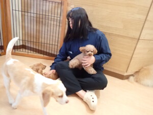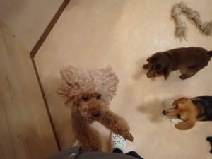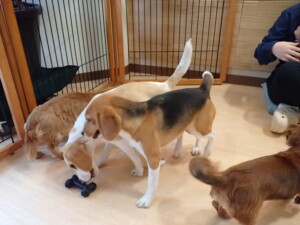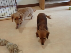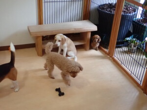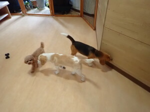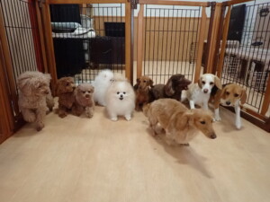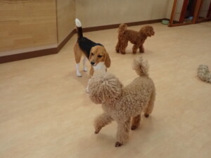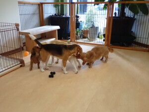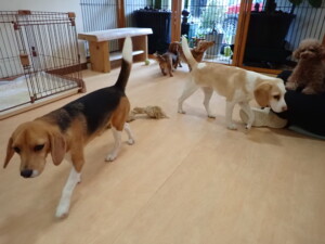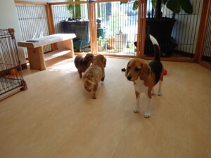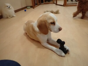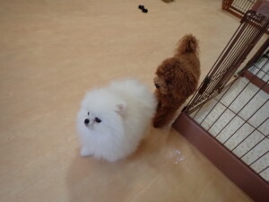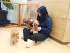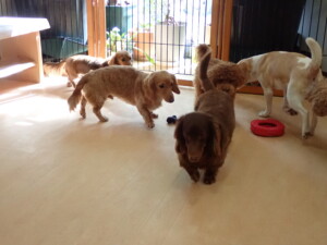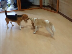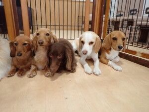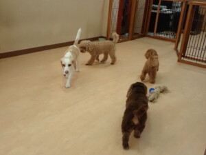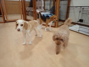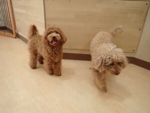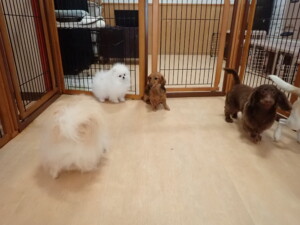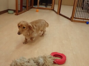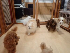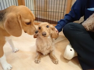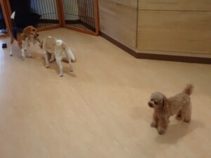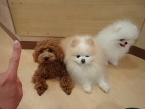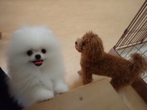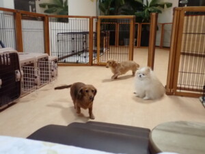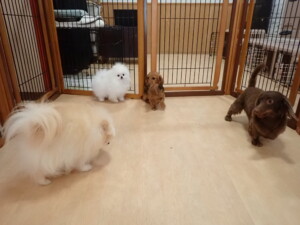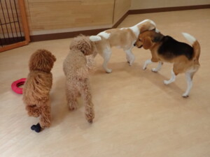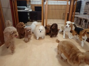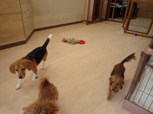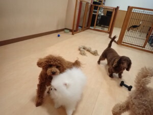 二瑚ちゃんとチャロちゃん、落ち着いて過ごしていました。三瑚君、はな子ちゃん、グーちゃん、アレックス君、じゃんぷ君、ルイ君、もち太君、元気に遊んでいました。ルイ君、「お座り」・「フセ」・「マテ」・「オイデ」の練習をしました。もち太君、「お座り」・「マテ」の練習をしました。