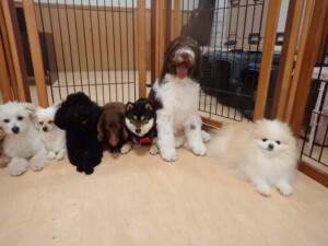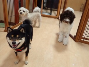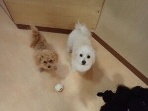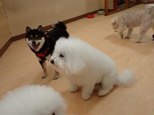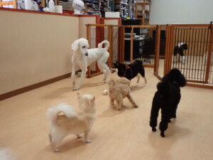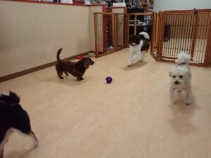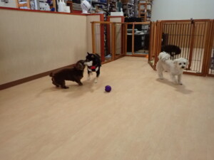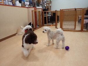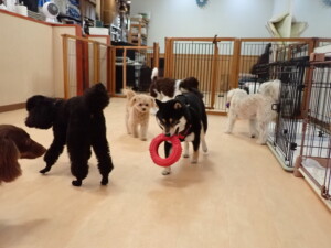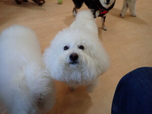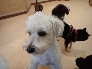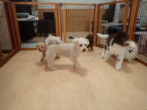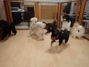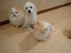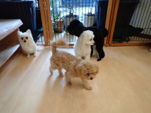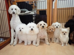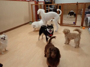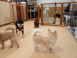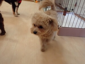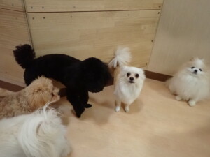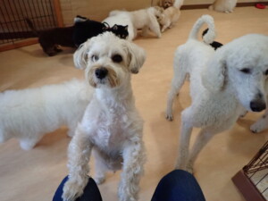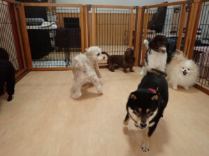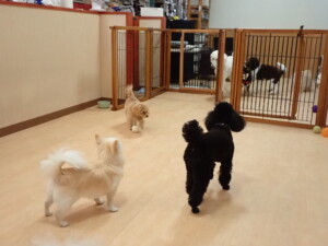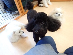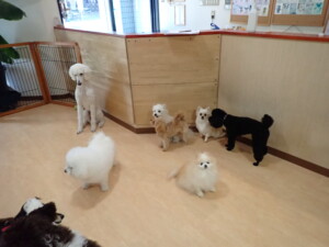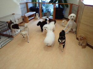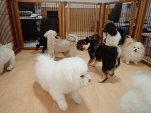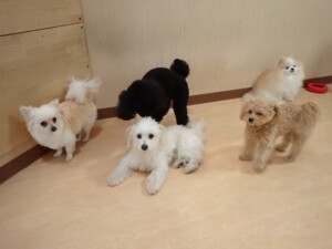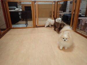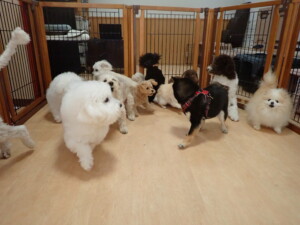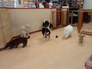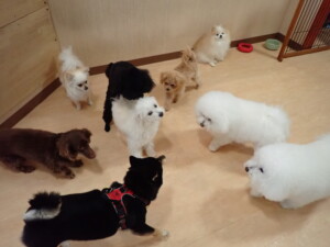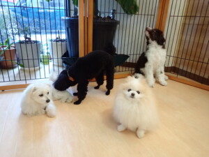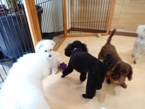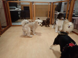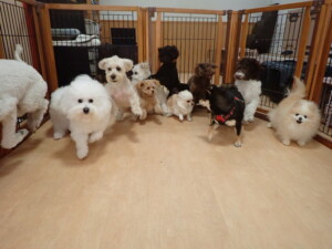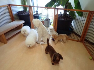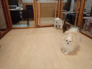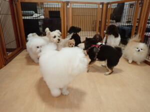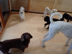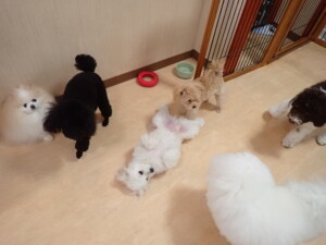 ポーちゃん、落ち着いて過ごしていました。ブブ君、モコ君、ぴのちゃん、ふじまる君、ミルちゃん、アメリちゃん、こげ茶君、じゃんぷ君、スズちゃん、トイ君、元気に遊んでいました。トイ君、「お座り」・「マテ」の練習をしました。