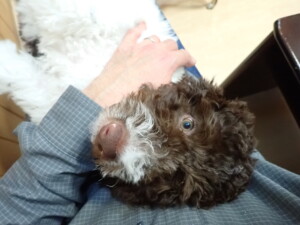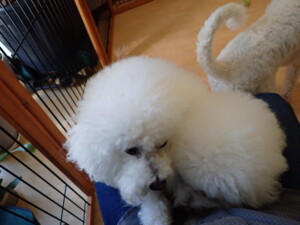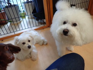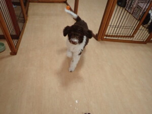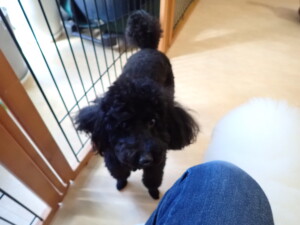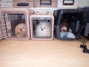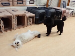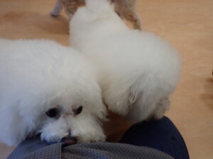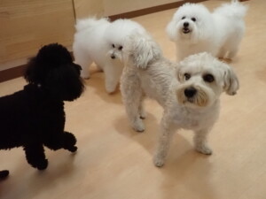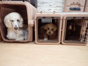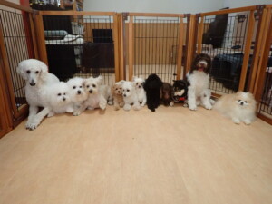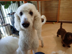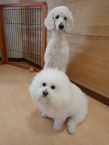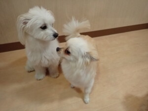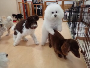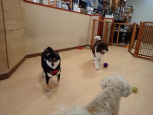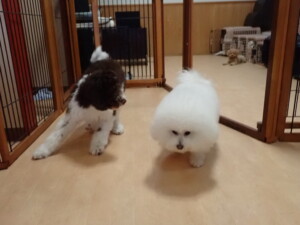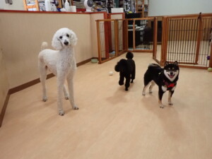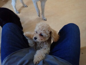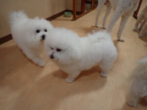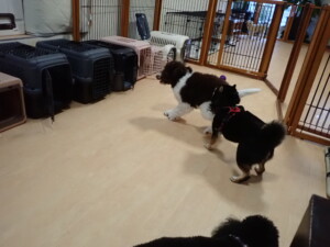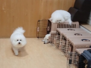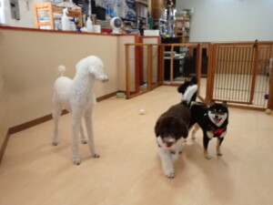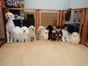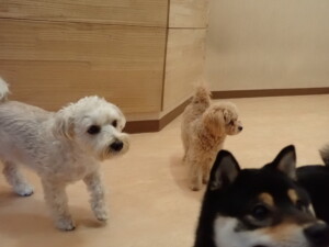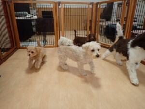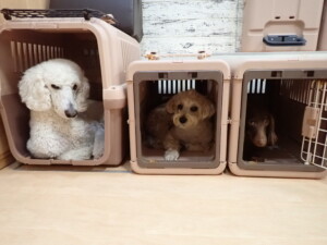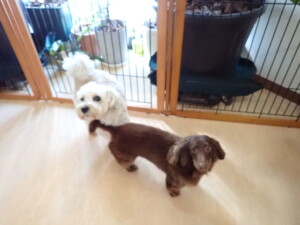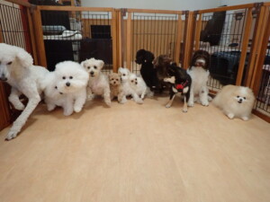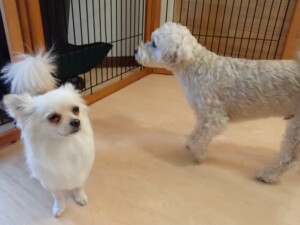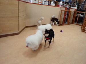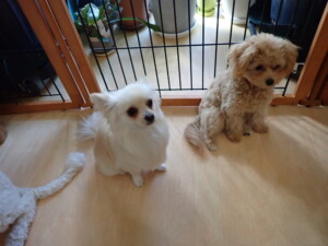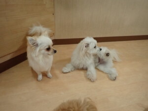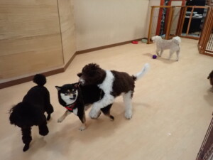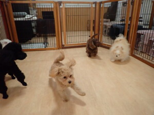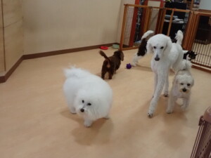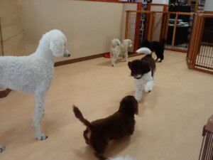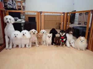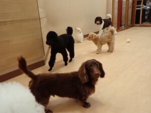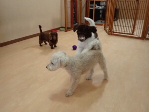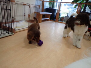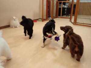 ポーちゃん、落ち着いて過ごしていました。ブブ君、モコ君、ぴのちゃん、ふじまる君、ミルちゃん、アメリちゃん、こげ茶君、じゃんぷ君、スズちゃん、トイ君、元気に遊んでいました。トイ君、「お座り」・「マテ」の練習をしました。