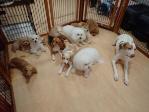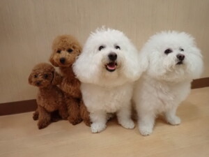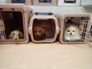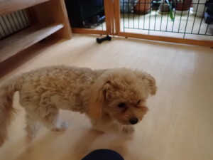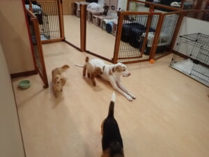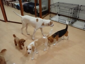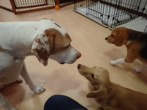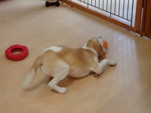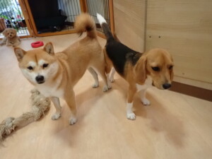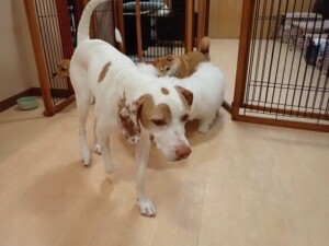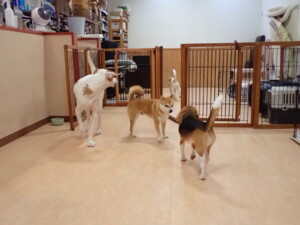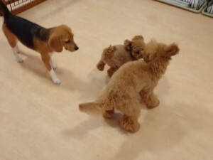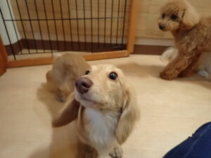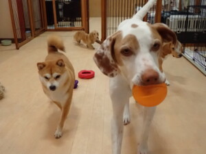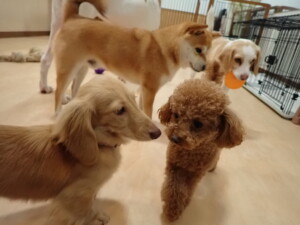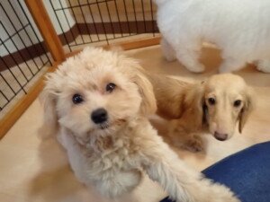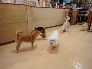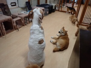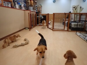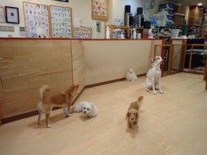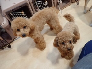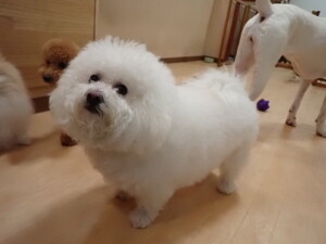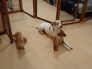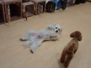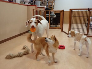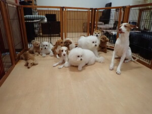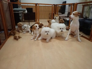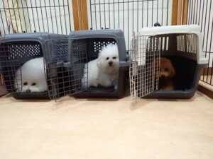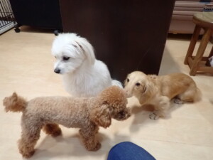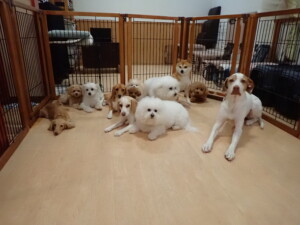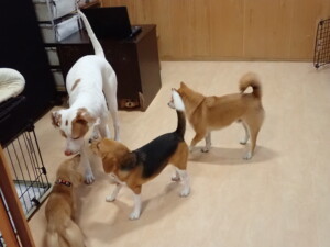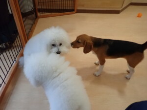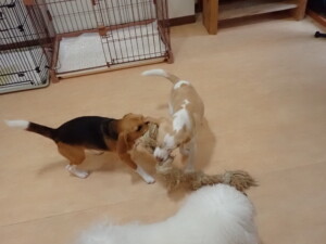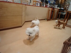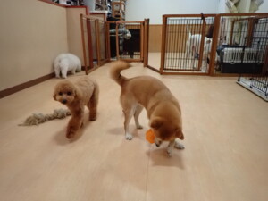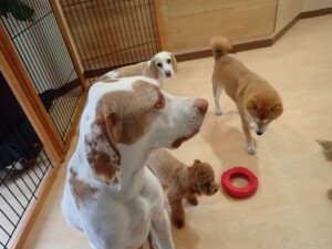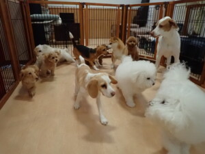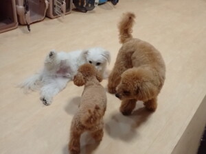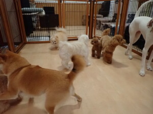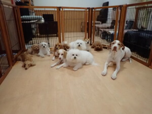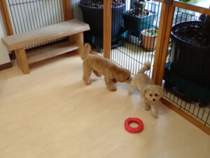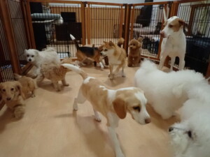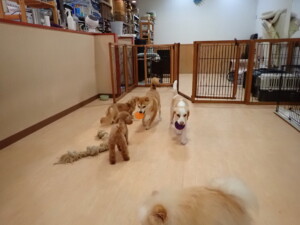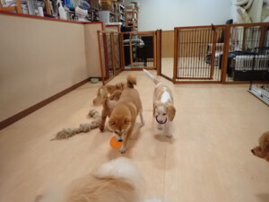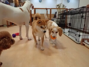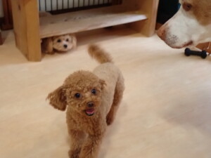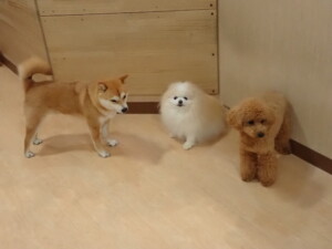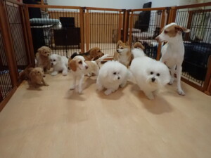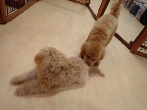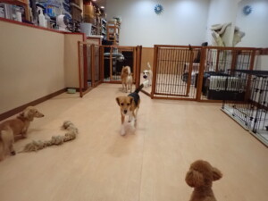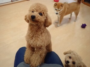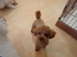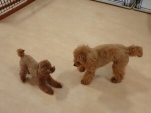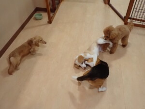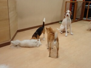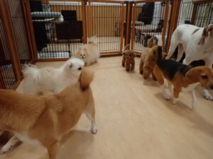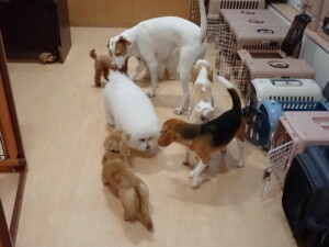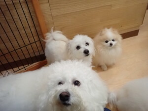 ポーちゃん、ミコルちゃん、落ち着いて過ごしていました。ブブ君、モコ君、ぴのちゃん、グーちゃん、はな子ちゃん、メリィちゃん、だんご君、たっくす君、アビーちゃん、元気に遊んでいました。ミコルちゃん、「お座り」・「フセ」・「マテ」の練習をしました。