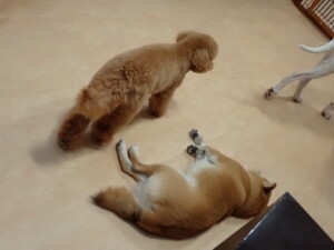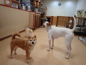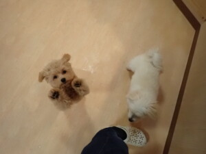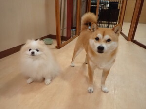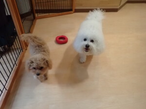 ポーちゃんとブブ君、昨夜はお泊まりでした。機嫌よく過ごしていました。