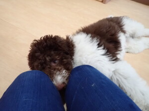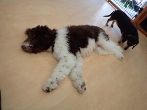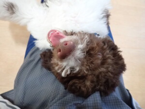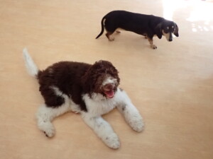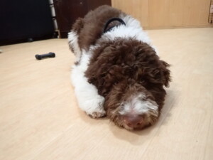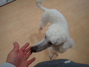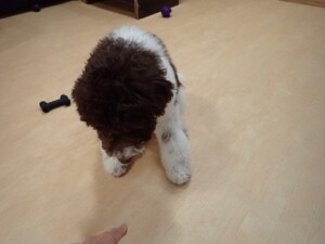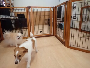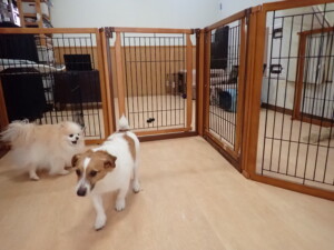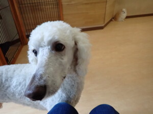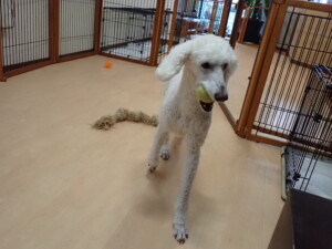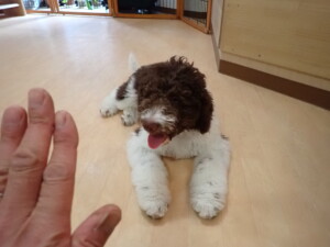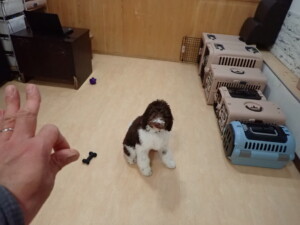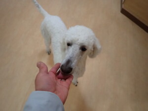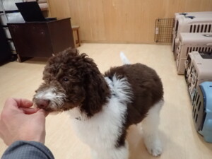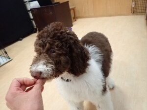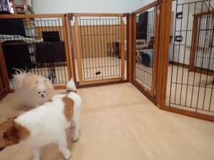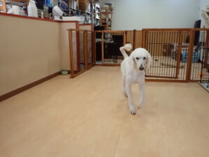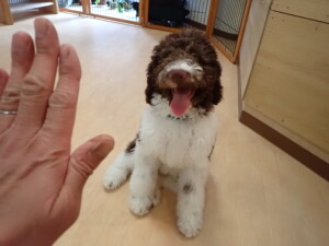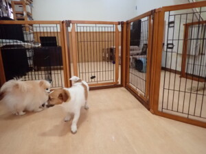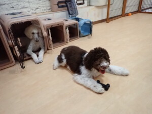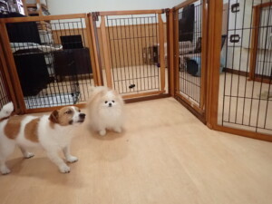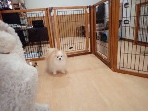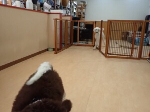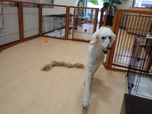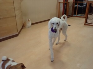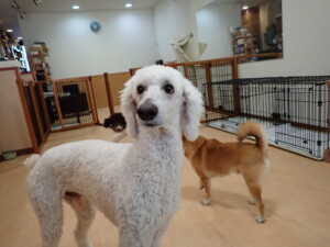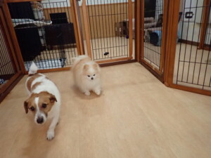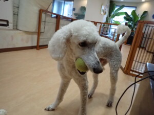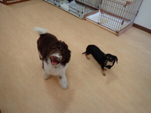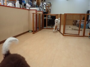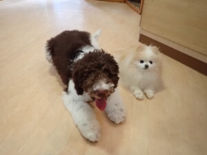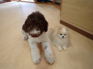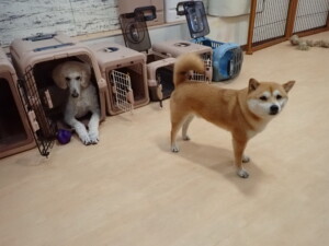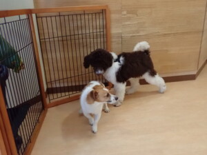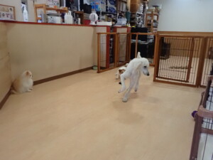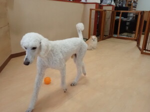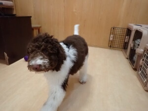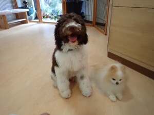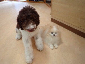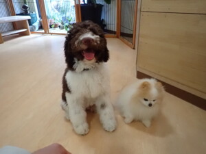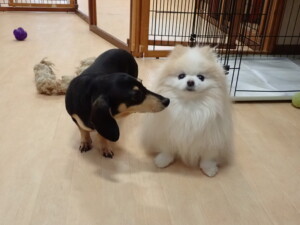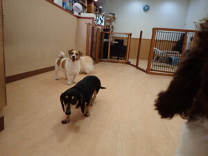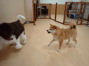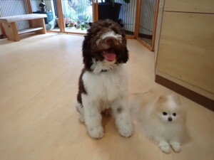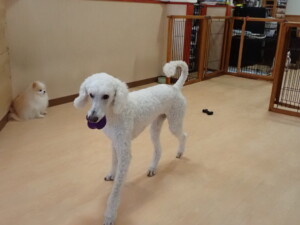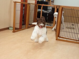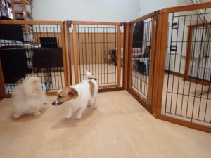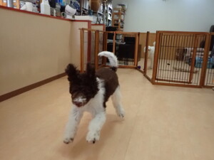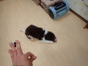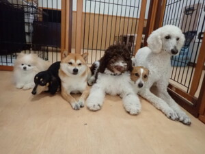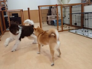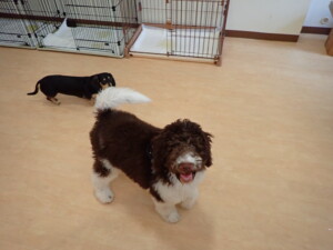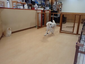 ふじまる君、寛大君、モコちゃん、だんご君、トイ君、みんな元気に遊んでいました。トイ君、「お座り」・「フセ」・「マテ」の練習をしました。