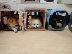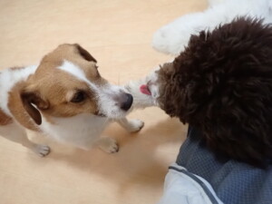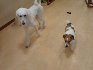 今日はふじまる君、寛大君、モコちゃん、だんご君が遊びに来てくれました。そして、トイ君がトレーニングに来てくれました。