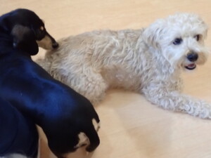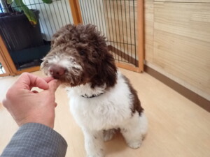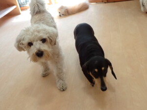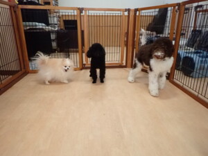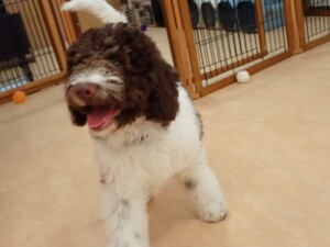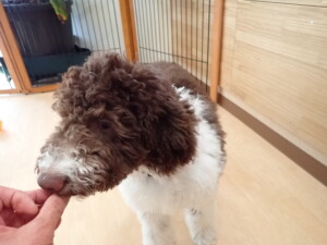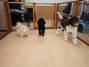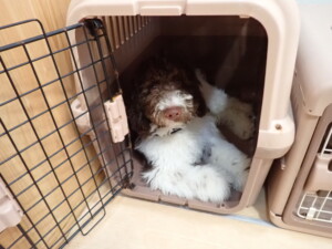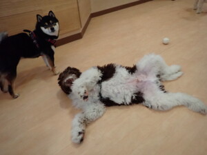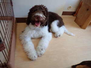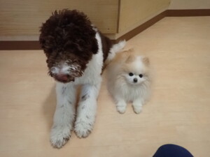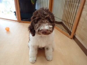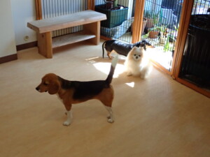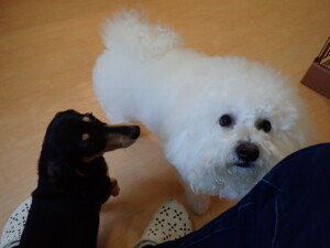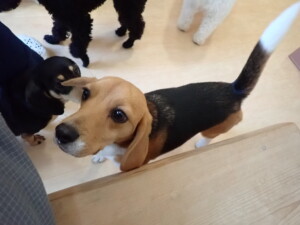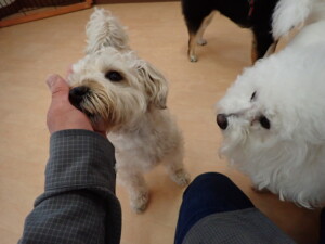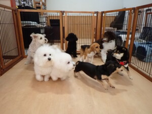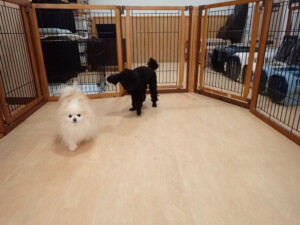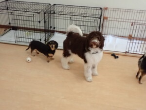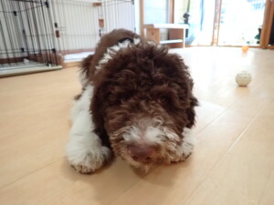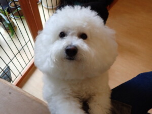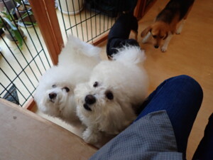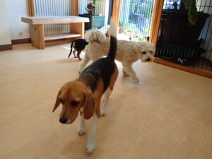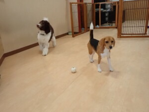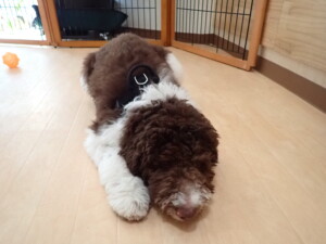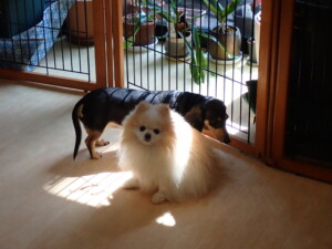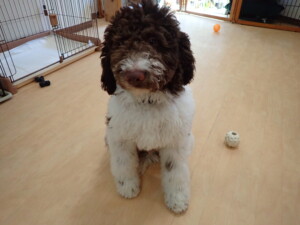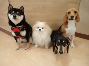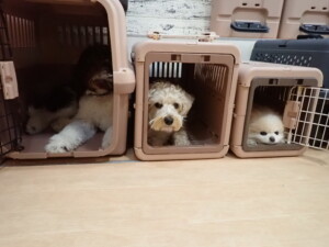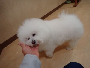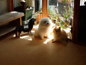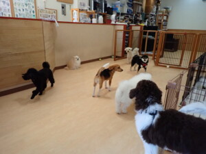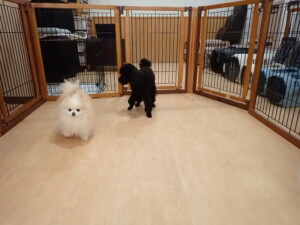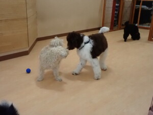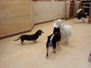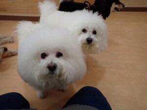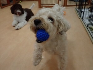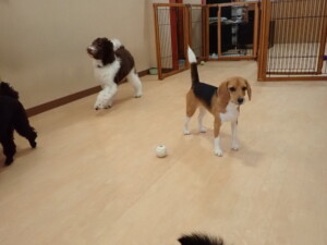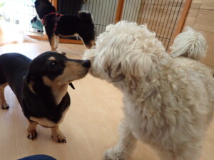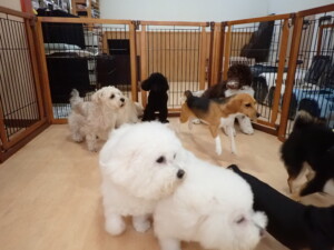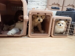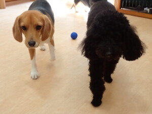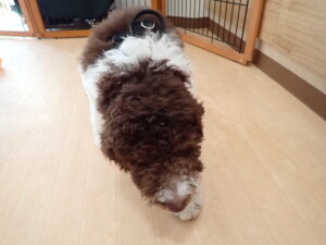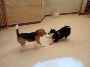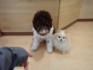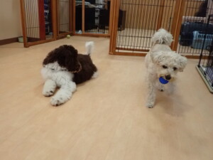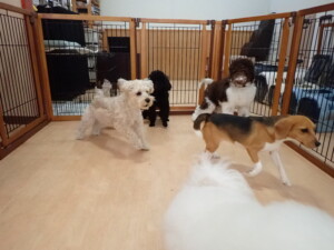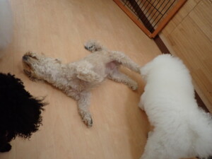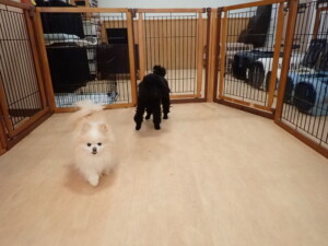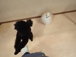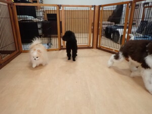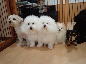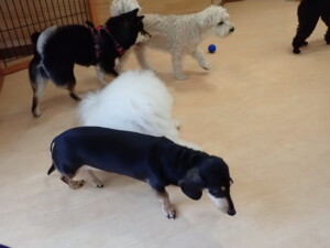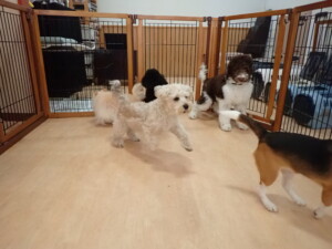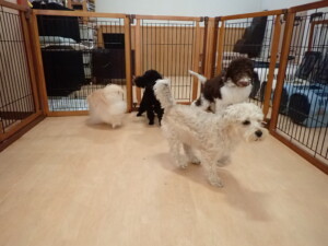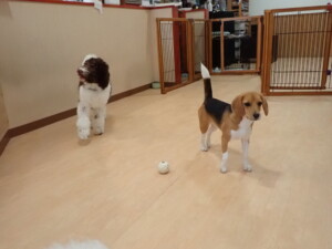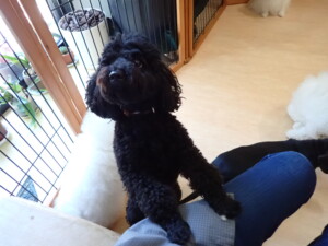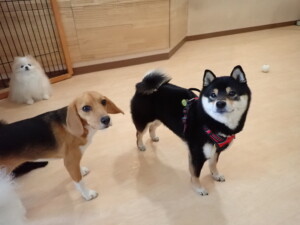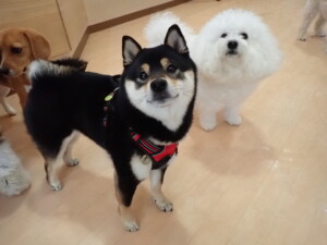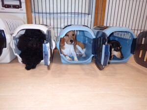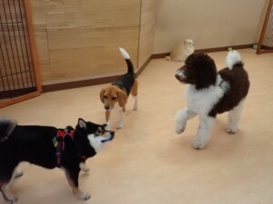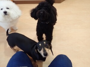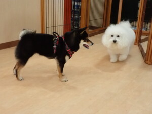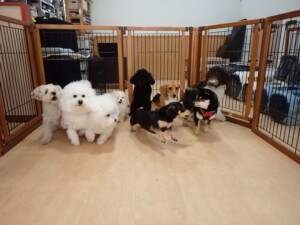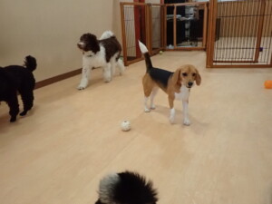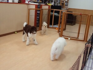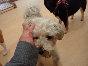 ポーちゃん、落ち着いて過ごしていました。ブブ君、アメリちゃん、、こげ茶君、はな子ちゃん、モコちゃん、スズちゃん、トイ君、元気に遊んでいました。トイ君、「お座り」・「フセ」・「マテ」・「オイデ)の