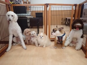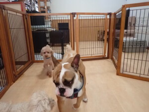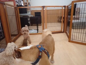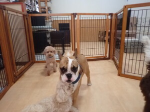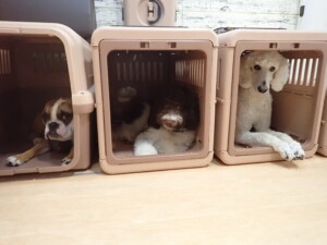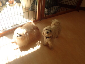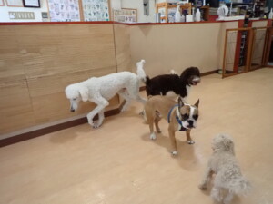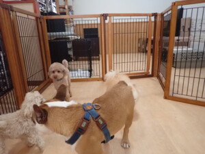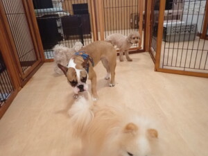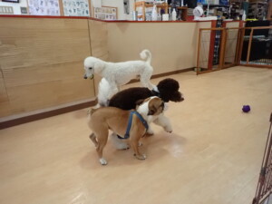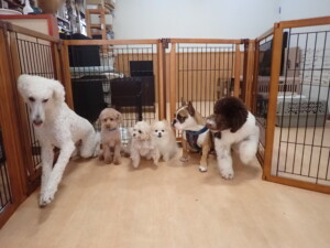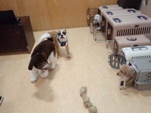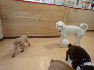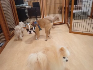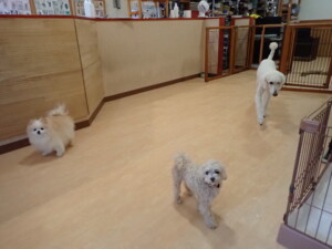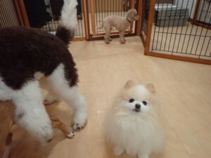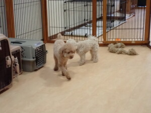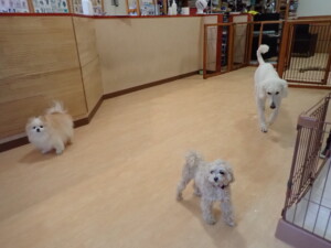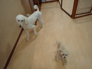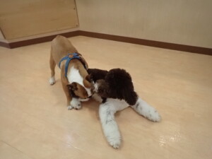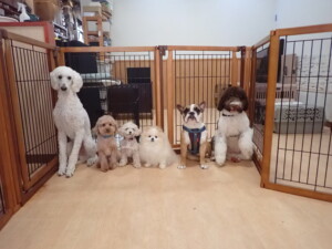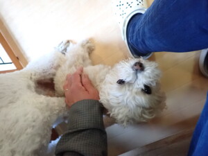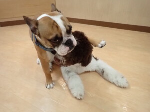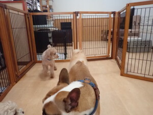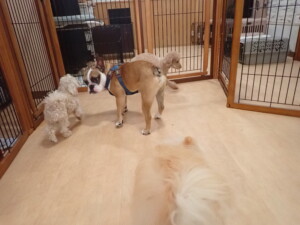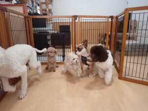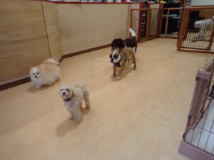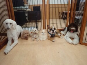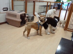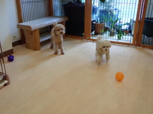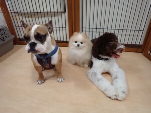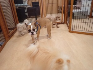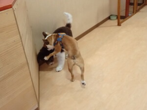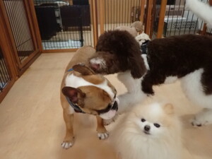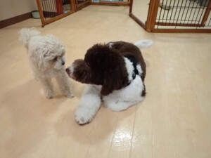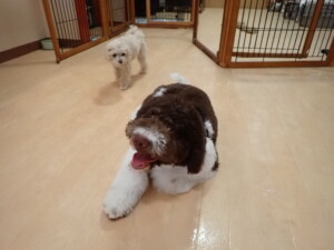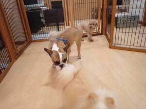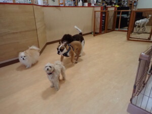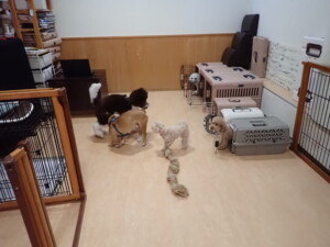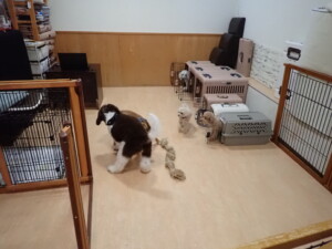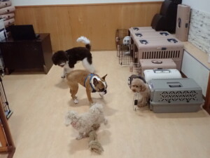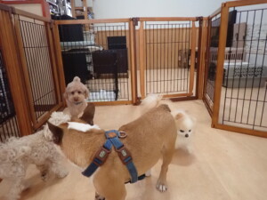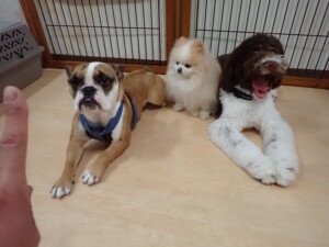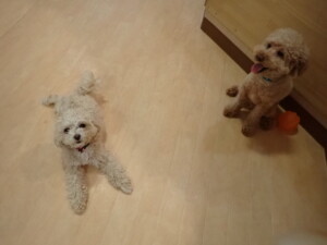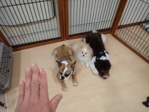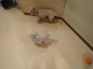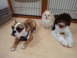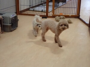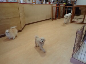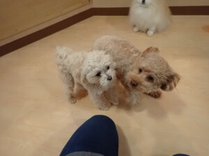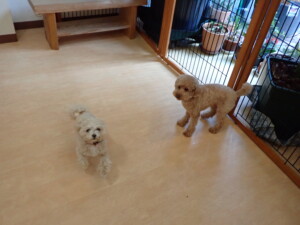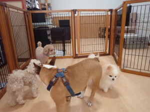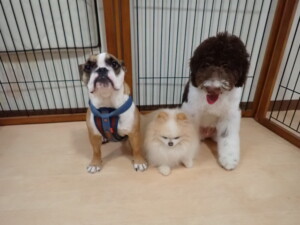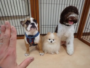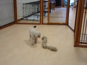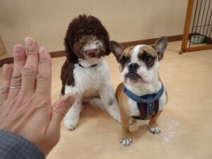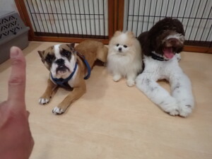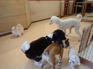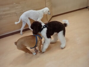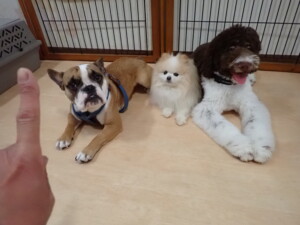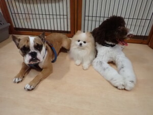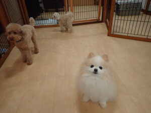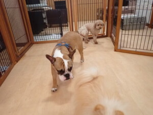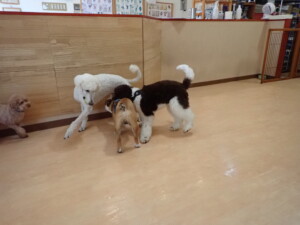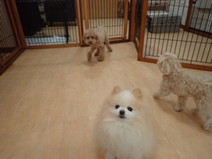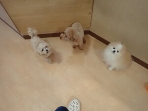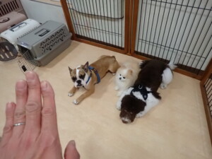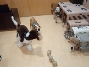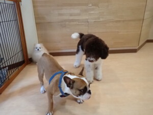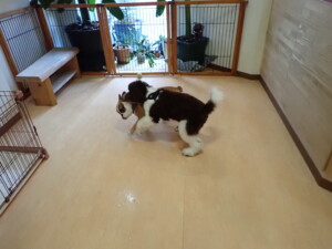 ふじまる君、ちいこちゃん、ソラ君、トイ君、アントニー君、みんな元気に遊んでいました。トイ君とアントニー君、「お座り」・「フセ」・「マテ」・「オイデ」の練習をしました。
