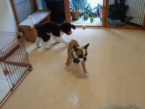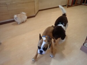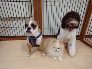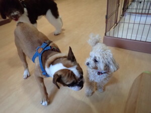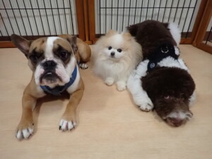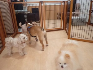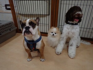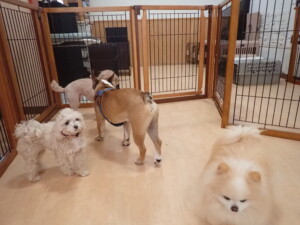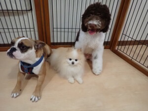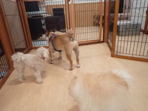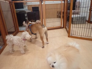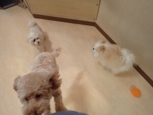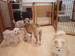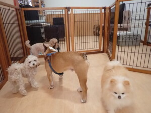 今日はふじまる君、ちいこちゃん、ソラ君が遊びに来てくれました。そして、トイ君とアントニー君、トレーニングに来てくれました。