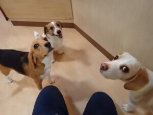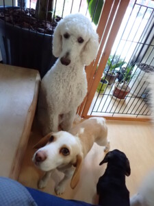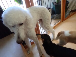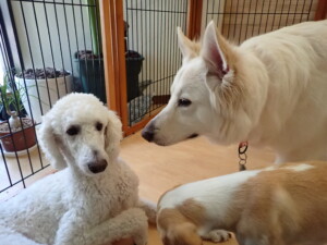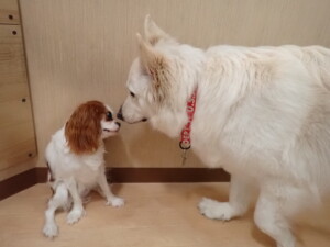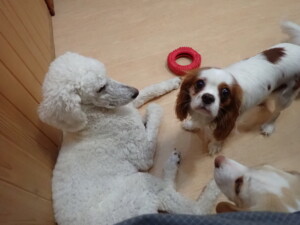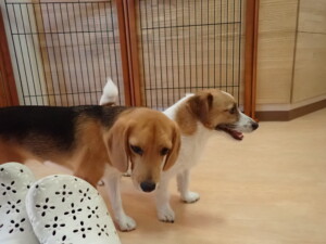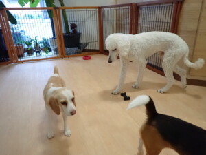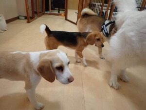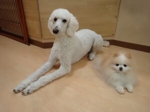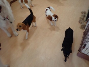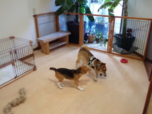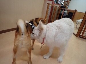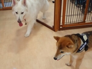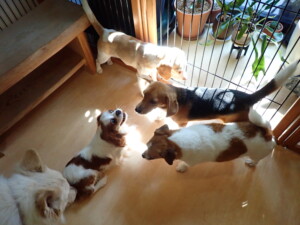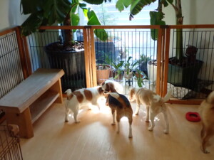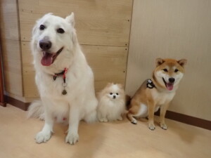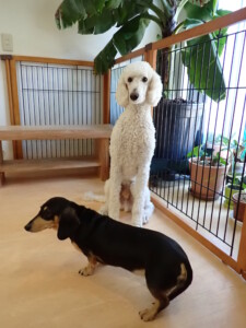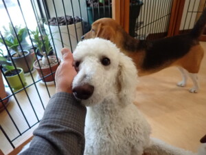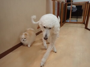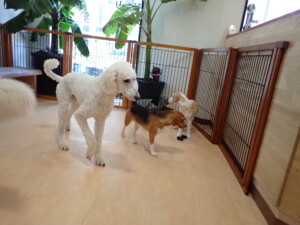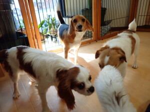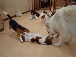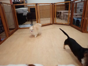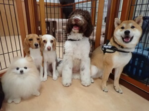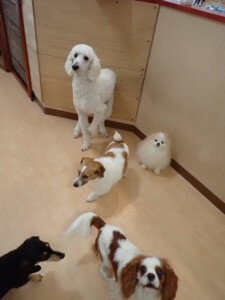 今日ははな子ちゃん、グーちゃん、むぎ君、寛大君、レオ君、ミアちゃん、モコちゃんが遊びに来てくれました。そして、トイ君がトレーニングに来てくれました。
