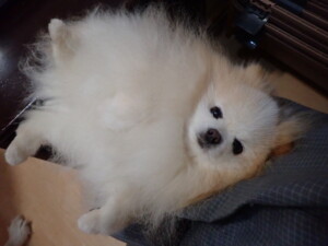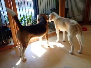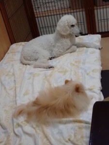 ふじまる君、昨夜はお泊まりでした。機嫌よく過ごしていました。