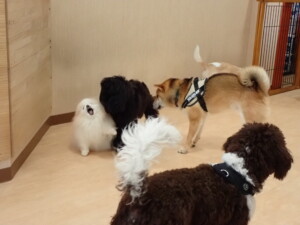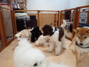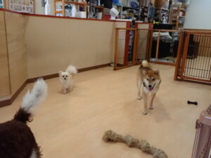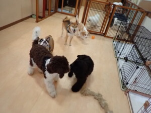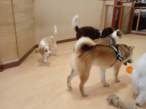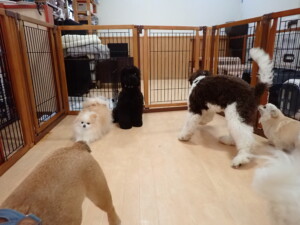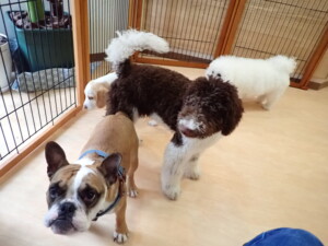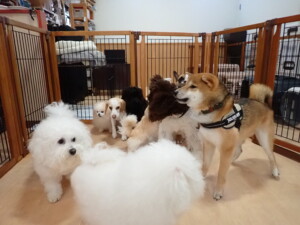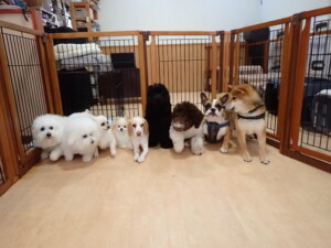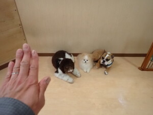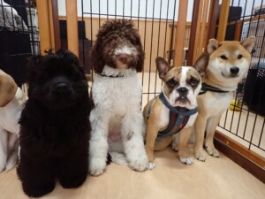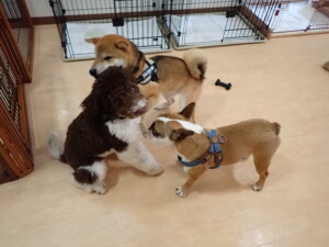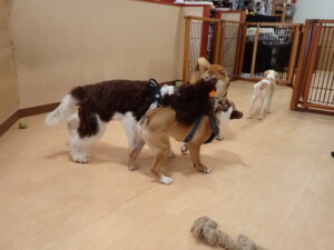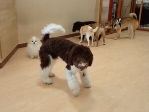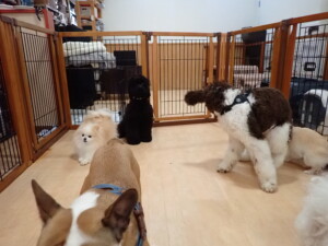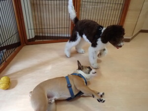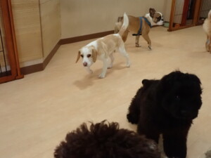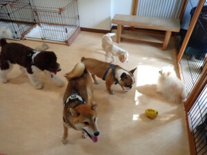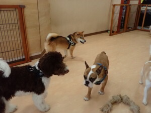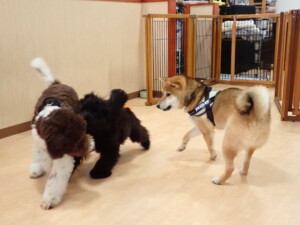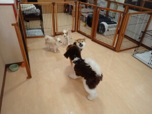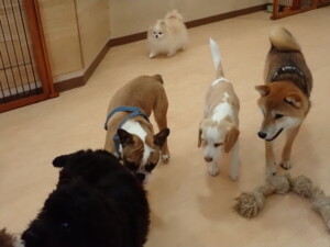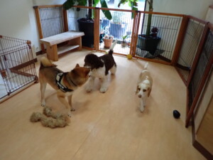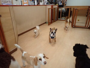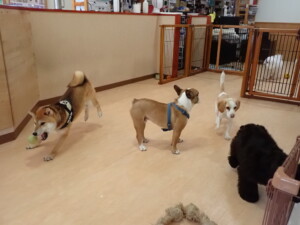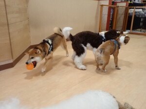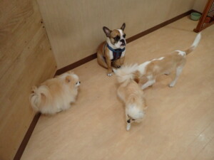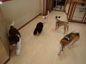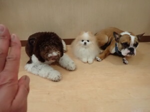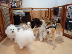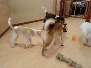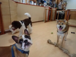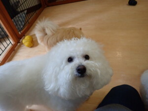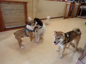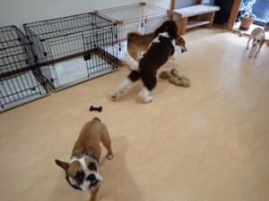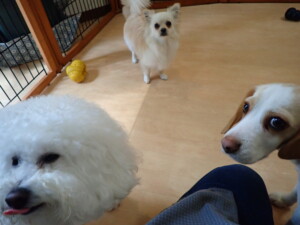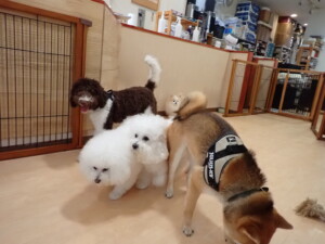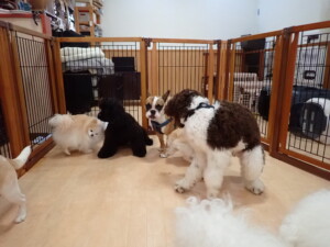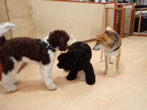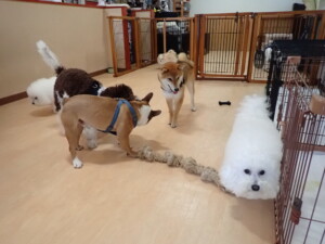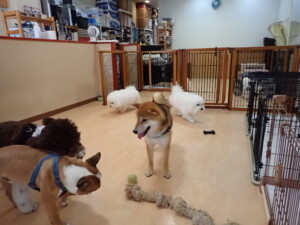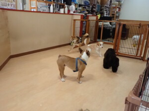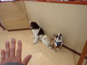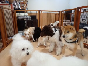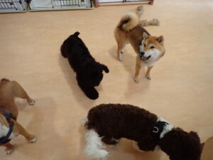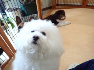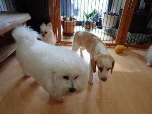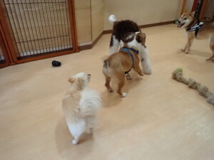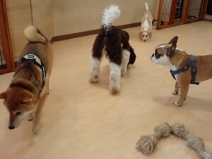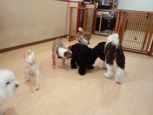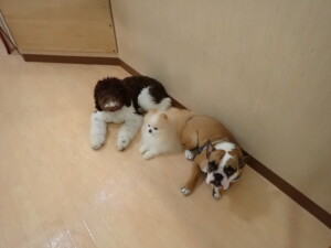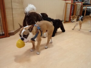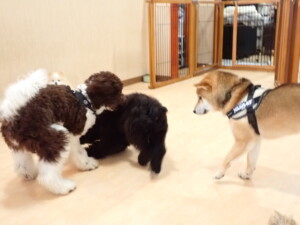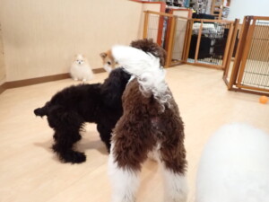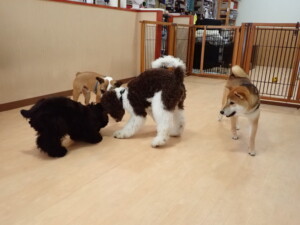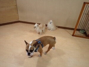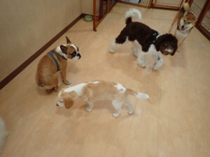 ポーちゃん、落ち着いて過ごしていました。ブブ君、グーちゃん、ミルちゃん、むぎ君、アントニー君、トイ君、キキ君、元気に遊んでいました。アントニー君とトイ君、「お座り」・「フセ」・「マテ」・「オイデ」・「ハウス」の練習をしました。キキ君、「お座り」・「マテ」の練習をしました。