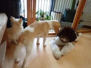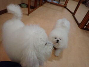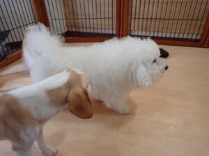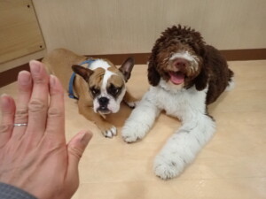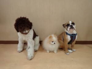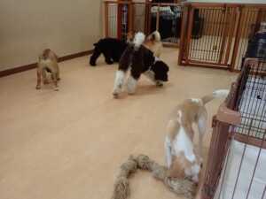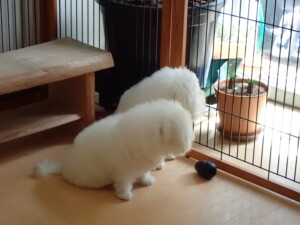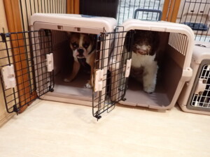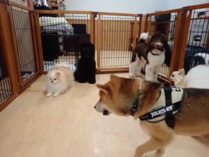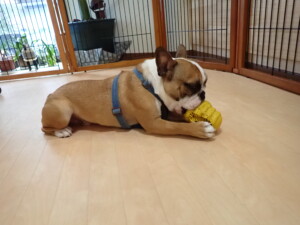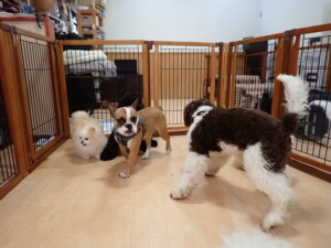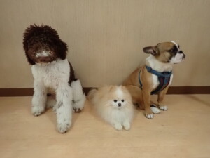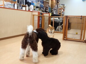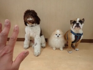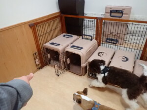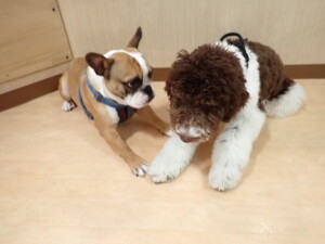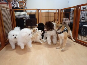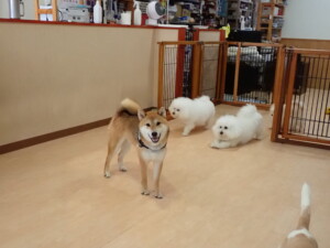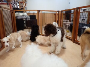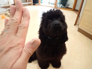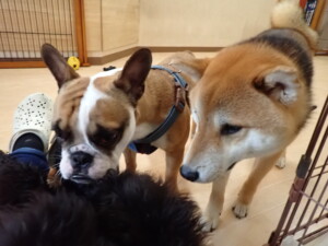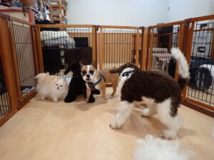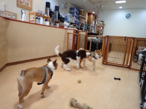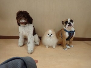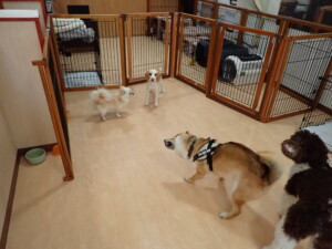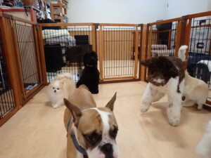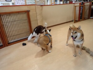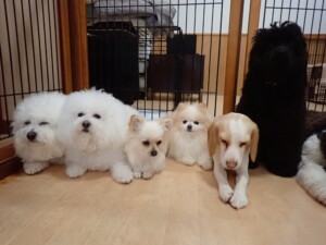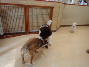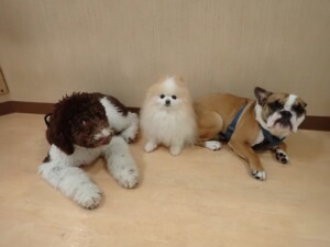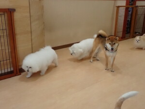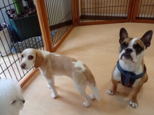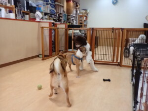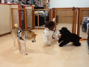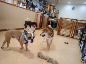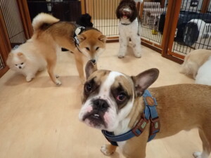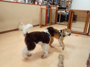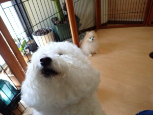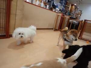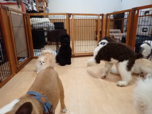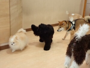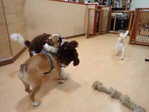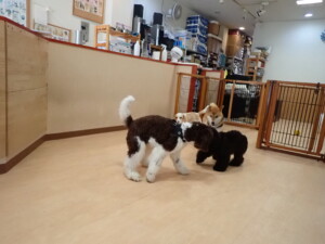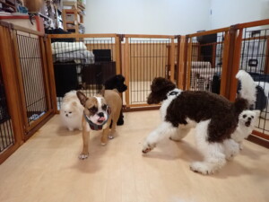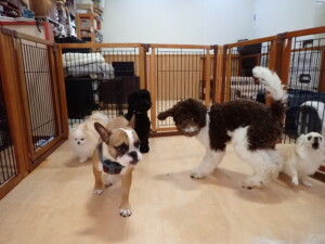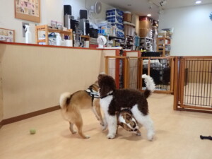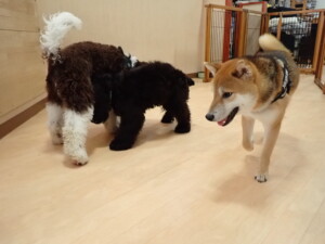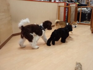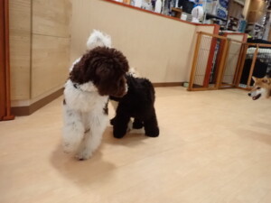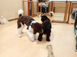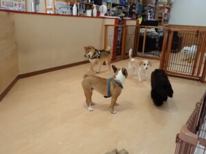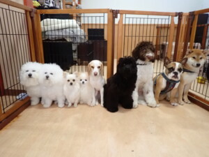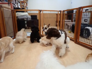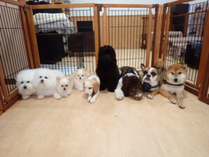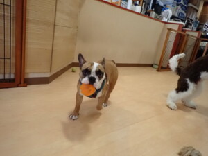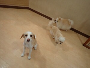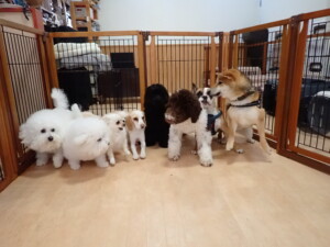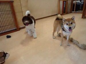 ポーちゃん、落ち着いて過ごしていました。ブブ君、グーちゃん、ミルちゃん、むぎ君、アントニー君、トイ君、キキ君、元気に遊んでいました。アントニー君とトイ君、「お座り」・「フセ」・「マテ」・「オイデ」・「ハウス」の練習をしました。キキ君、「お座り」・「マテ」の練習をしました。