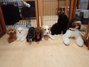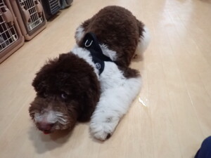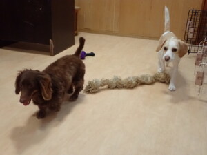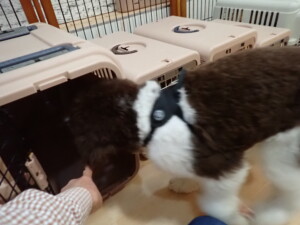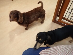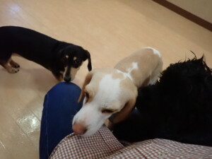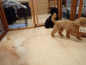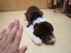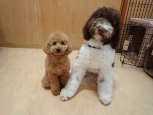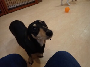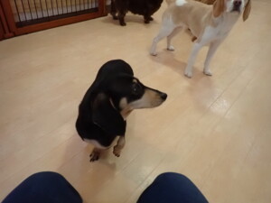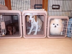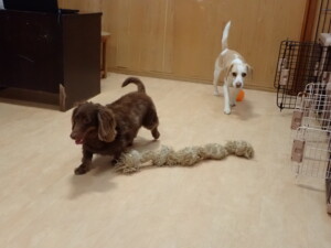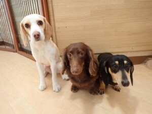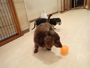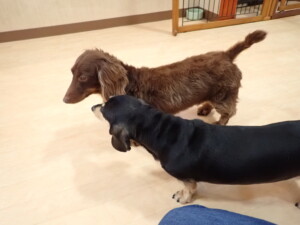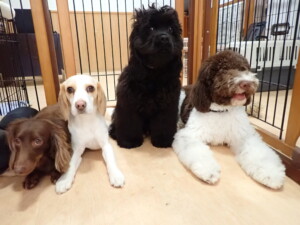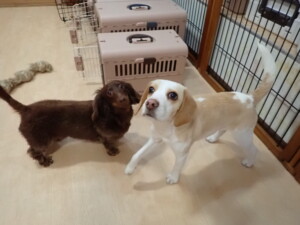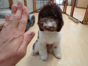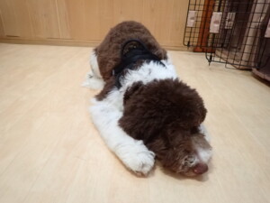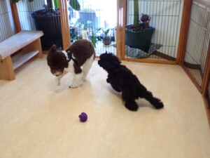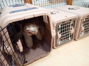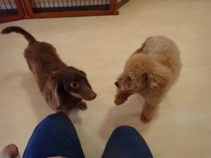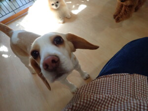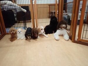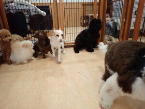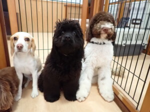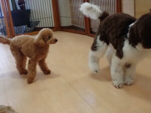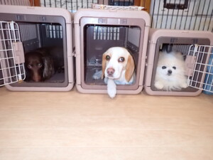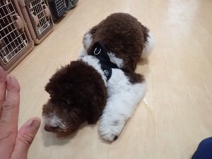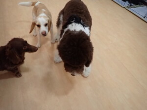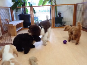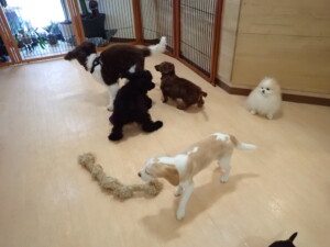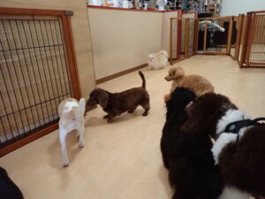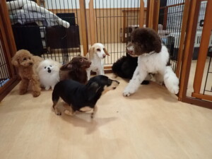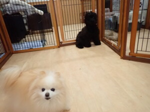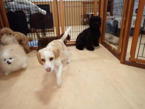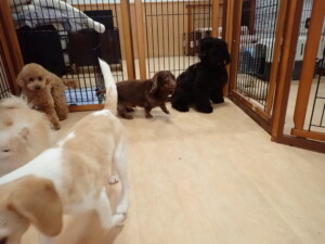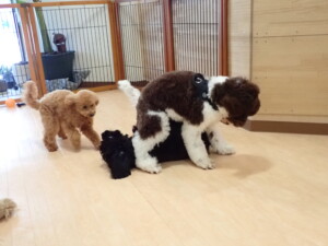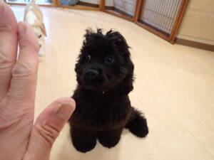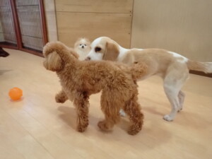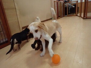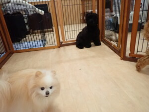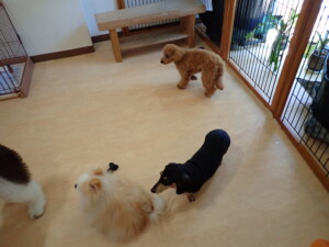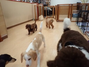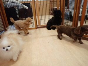 グーちゃん、じゃんぷ君、メリィちゃん、モコちゃん、キキ君、トイ君、元気に遊んでいました。キキ君、「お座り」・「マテ」の練習をしました。トイ君、「お座り」・「フセ」・「マテ」・「オイデ」・「ハウス」の練習をしました。
