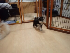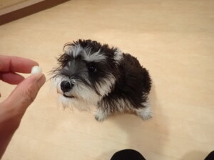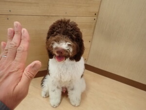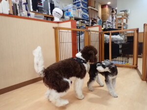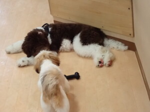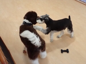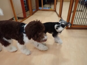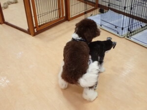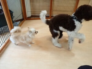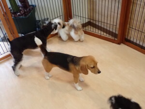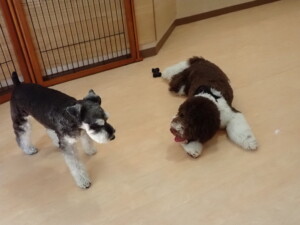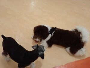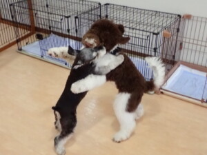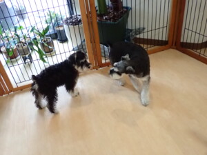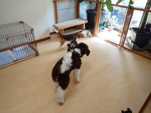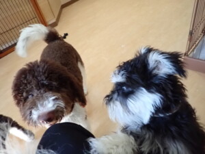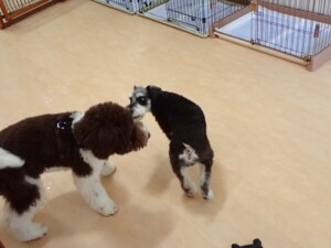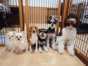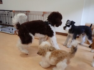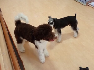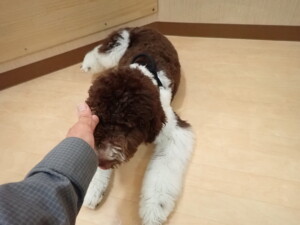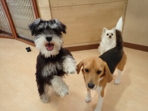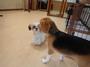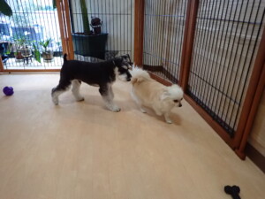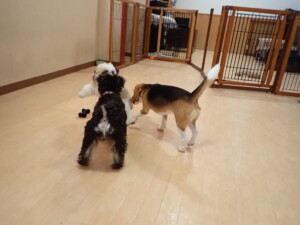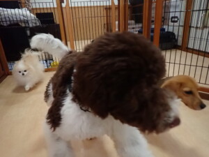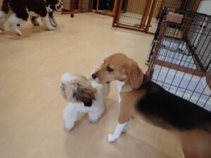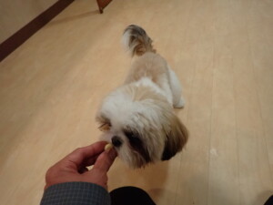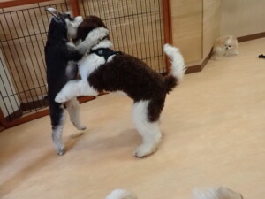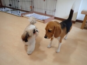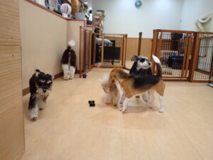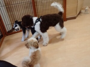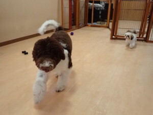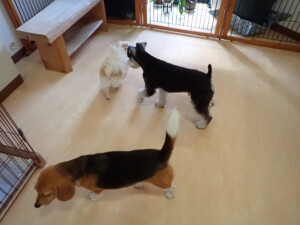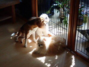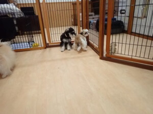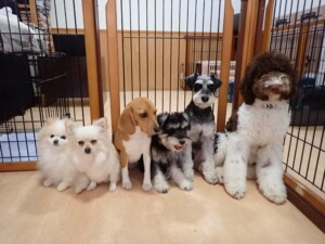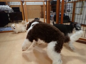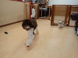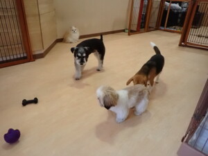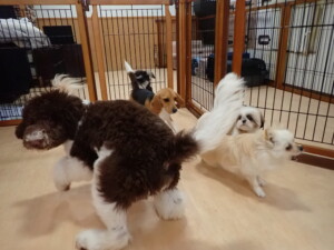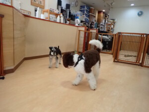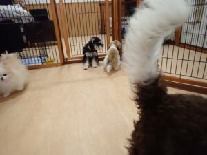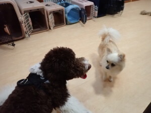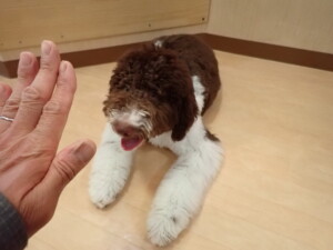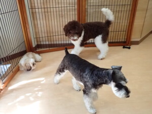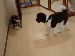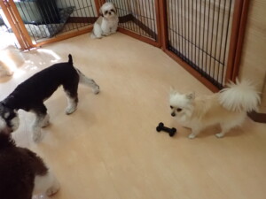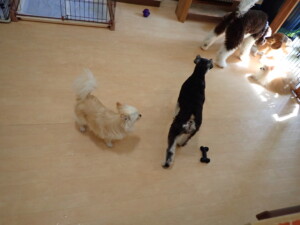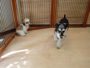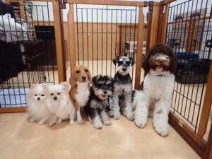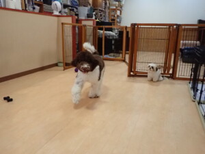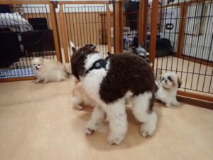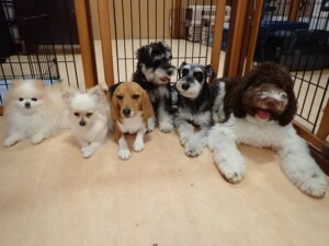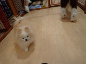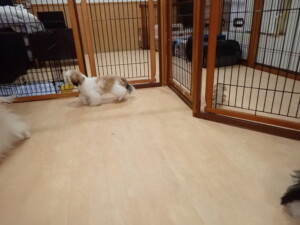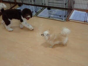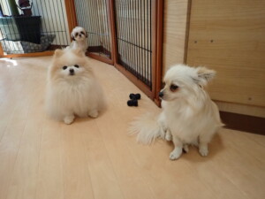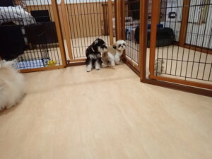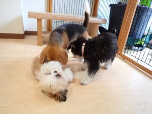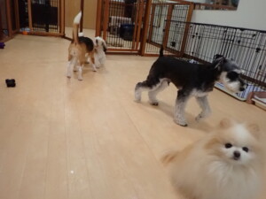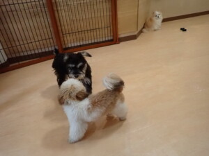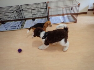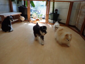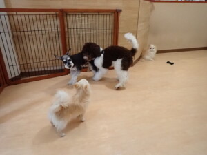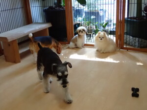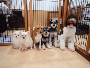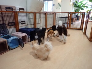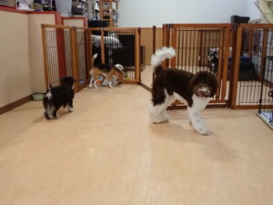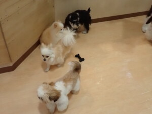 はな子ちゃん、ジャズ君、ミルちゃん、タムちゃん、トイ君、元気に遊んでいました。種ちゃん、落ち着いて過ごしていました。タムちゃん、「お座り」・「マテ」の練習をしました。トイ君、「お座り」・「フセ」・「マテ」・「オイデ」・「ハウス」の練習をしました。種ちゃん、「お座り」の練習をしました。