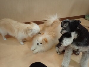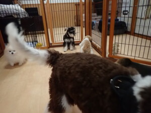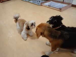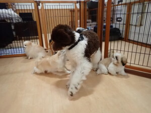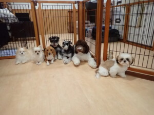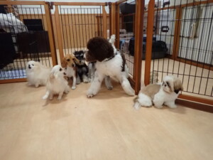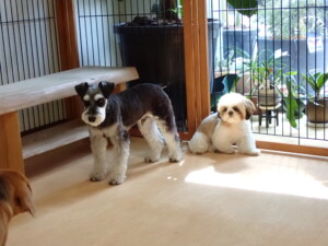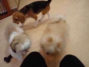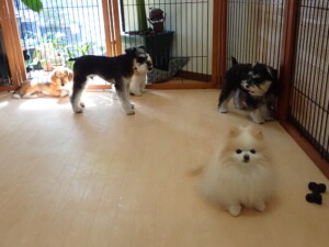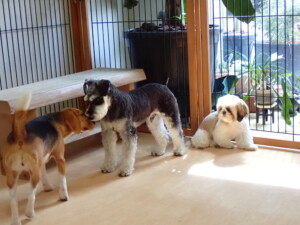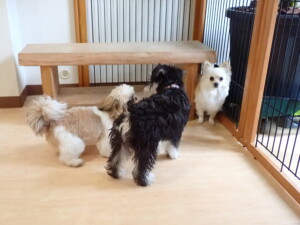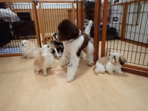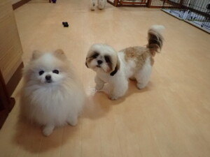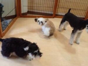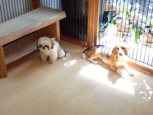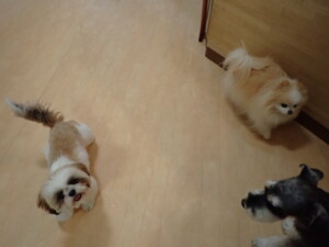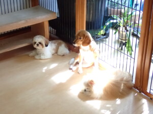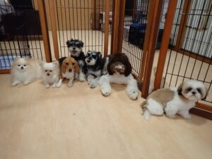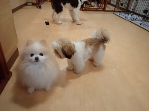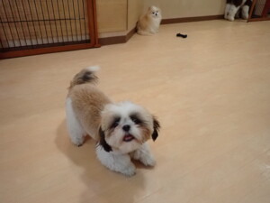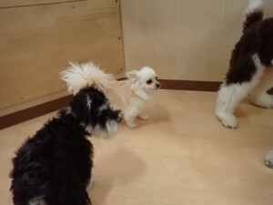 今日ははな子ちゃん、ジャズ君、ミルちゃんが遊びに来てくれました。そして、タムちゃんとトイ君がトレーニングに来てくれました。今日からトレーニングを始める種ちゃんも来てくれました。もうすぐ8ヶ月になるシーズーの女の子です。