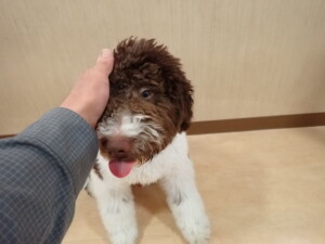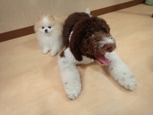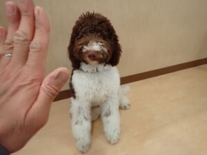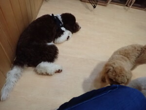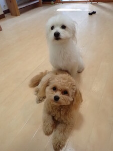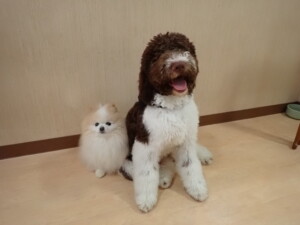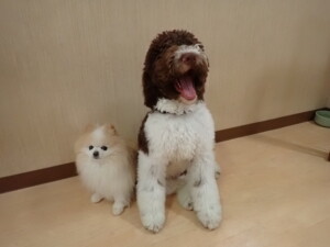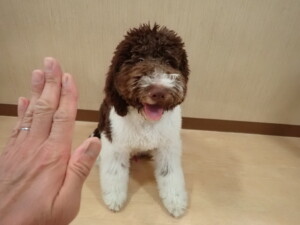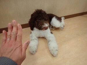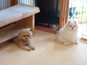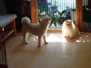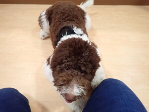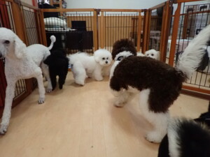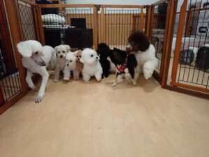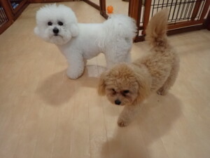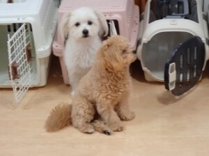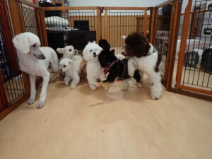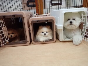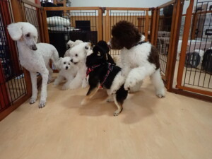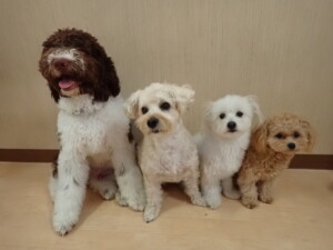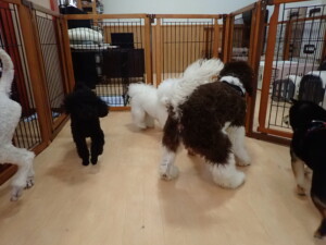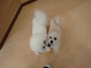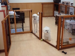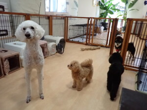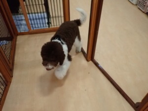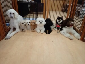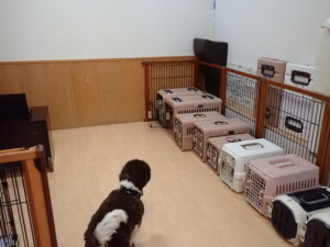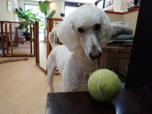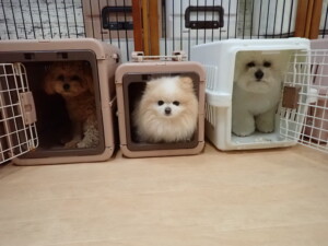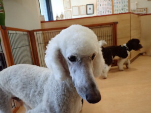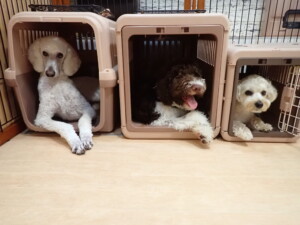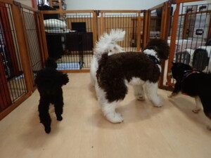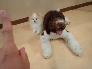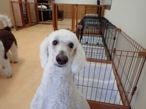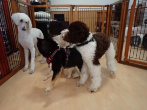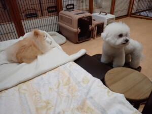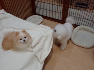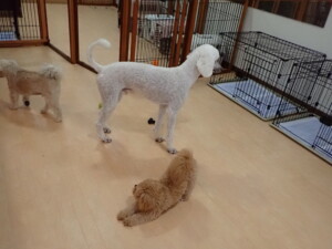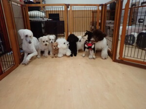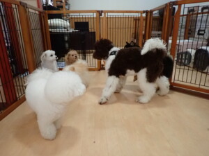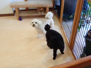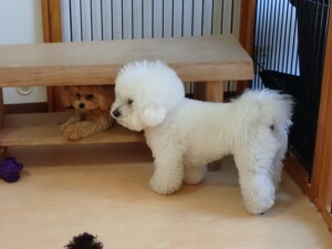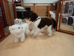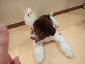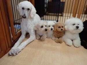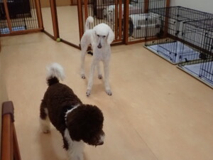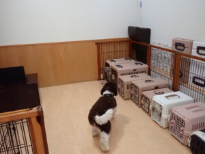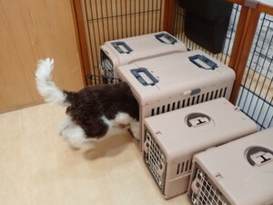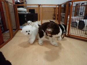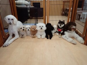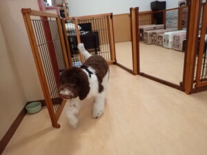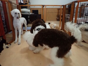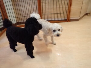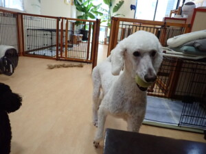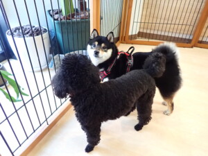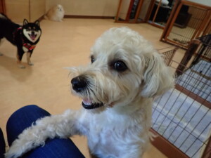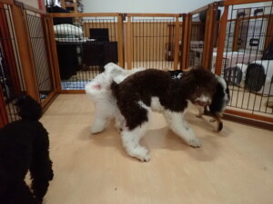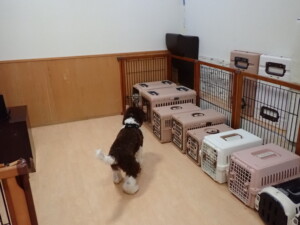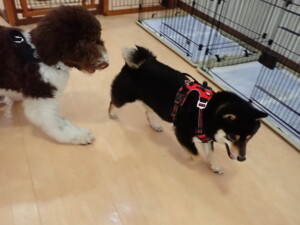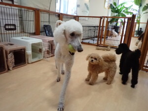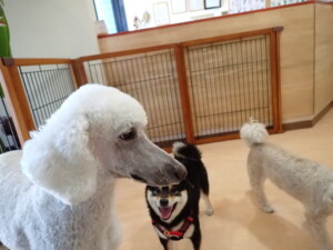ムートン君、モコ君、ぴのちゃん、アメリちゃん、ふじまる君、こげ茶君、スズちゃん、トイ君、みんな元気に遊んでいました。トイ君、「お座り」・「フセ」・「マテ」・「オイデ」・「ハウス」の練習をしました。