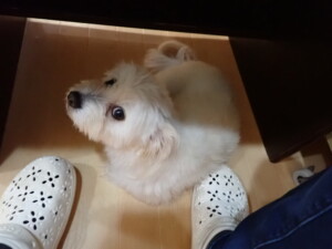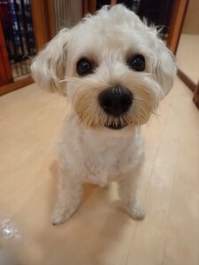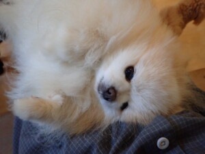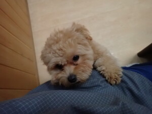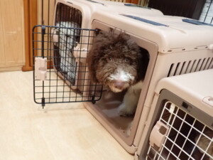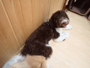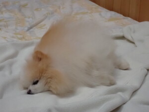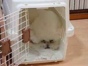 ムートン君、昨夜はお泊まりでした。機嫌よく過ごしていました。