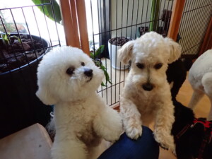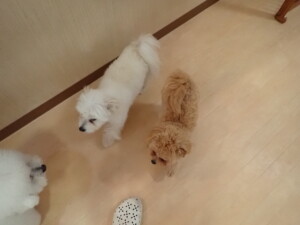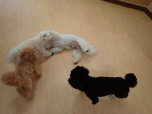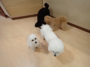 今日はモコ君、ぴのちゃん、アメリちゃん、ふじまる君、こげ茶君、スズちゃんが遊びに来てくれました。そして、トイ君がトレーニングに来てくれました。