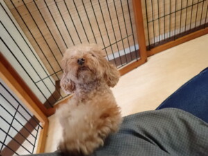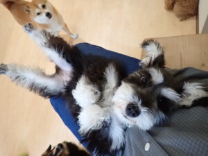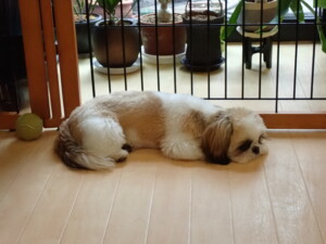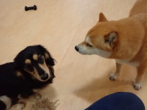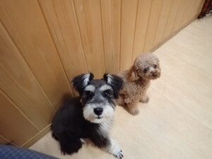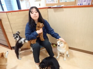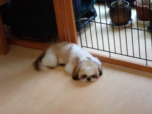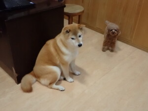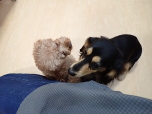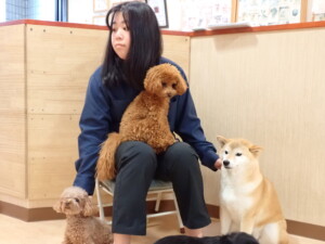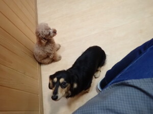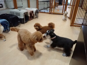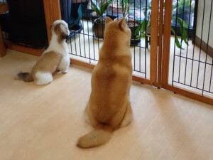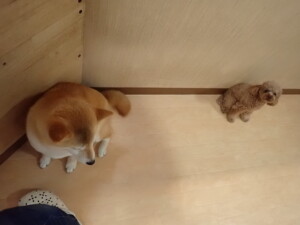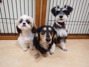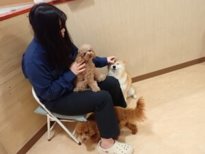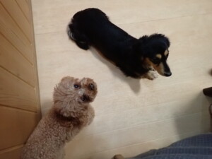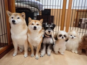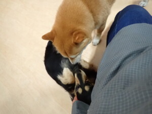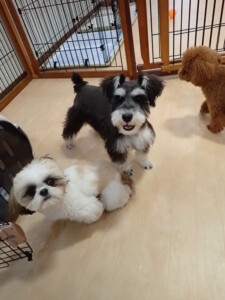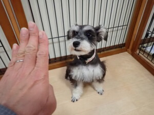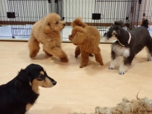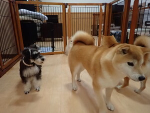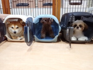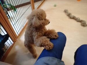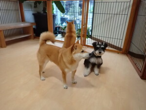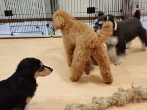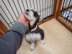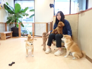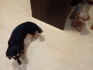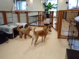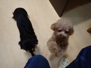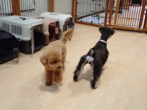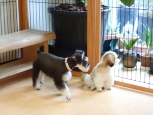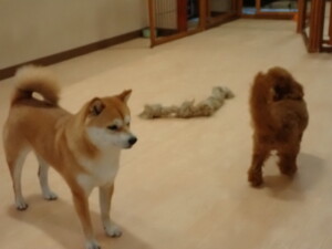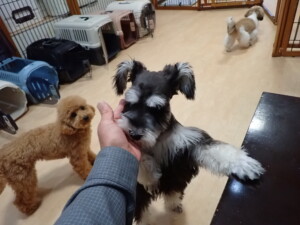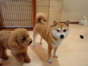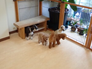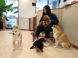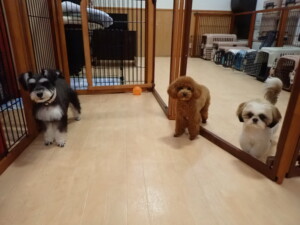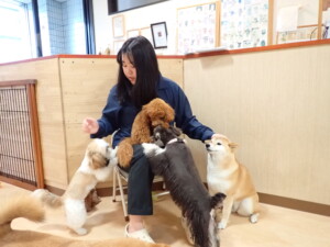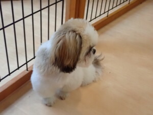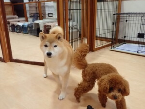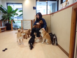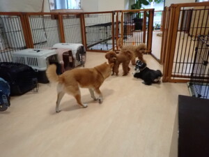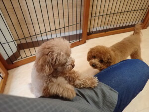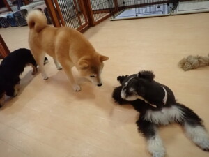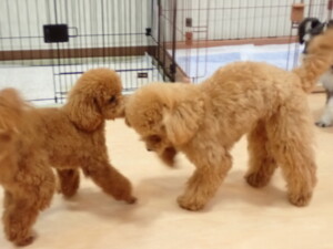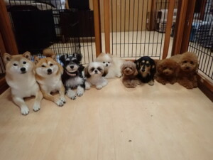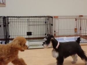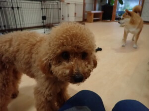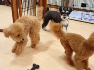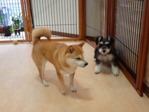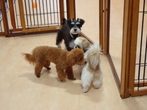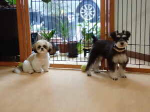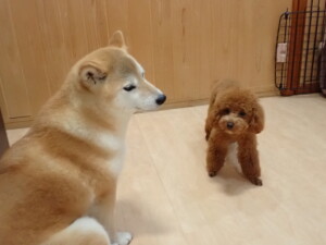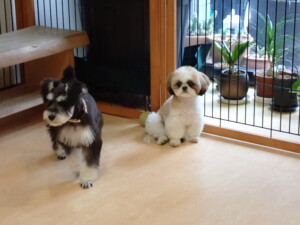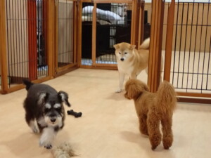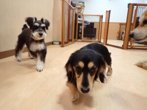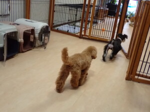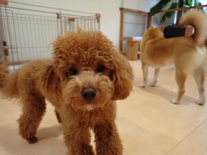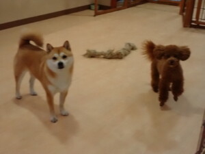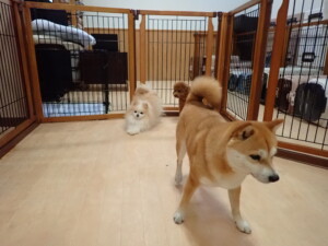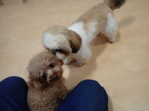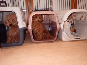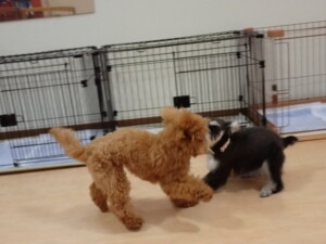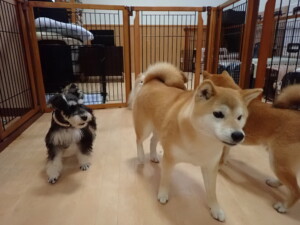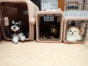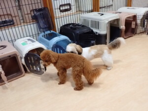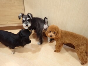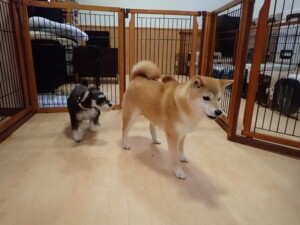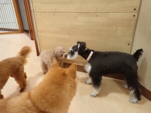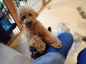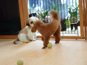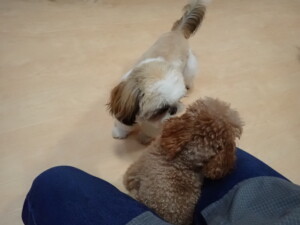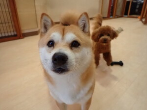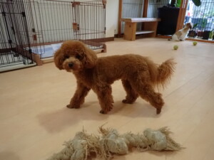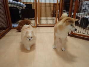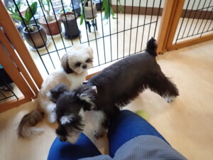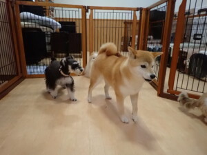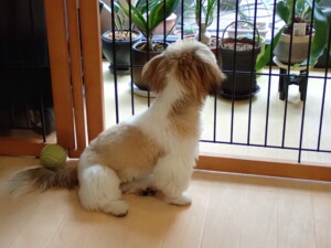 モコ君、だんご君、まる君、紅葉ちゃん、メリィちゃん、、種ちゃん、タムちゃん、元気に遊んでいました。チャロちゃん、落ち着いて過ごしていました。種ちゃんとタムちゃん、「お座り」・「フセ」・「マテ」の練習をしました。