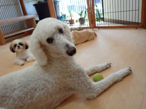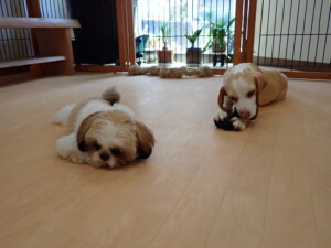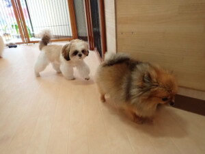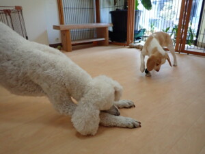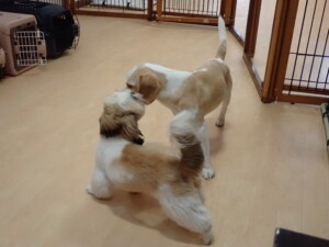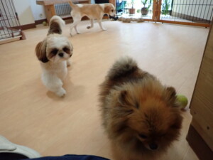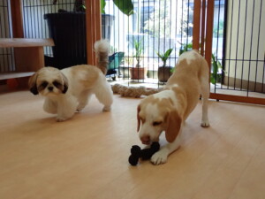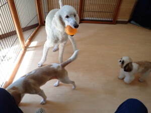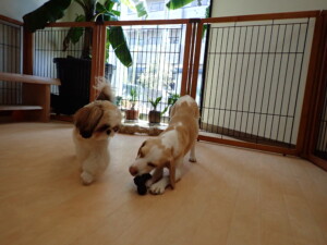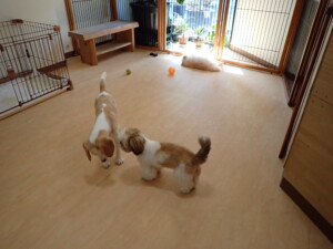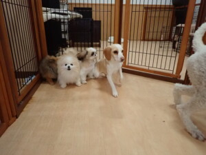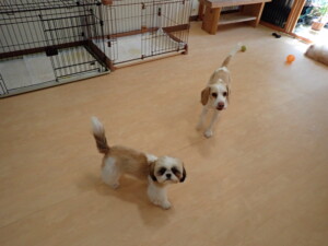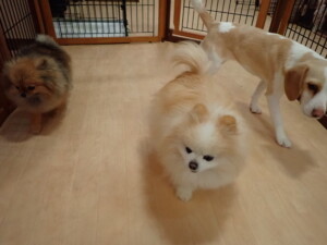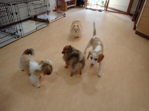 ふじまる君、グーちゃん、種ちゃん、元気に遊んでいました。卯月ちゃん、落ち着いて過ごしていました。種ちゃん、「お座り」・「フセ」・「マテ」・「オイデ」の練習をしました。