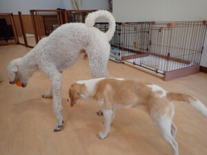 今日はグーちゃんと卯月ちゃんが遊びに来てくれました。そして、種ちゃんがトレーニングに来てくれました。