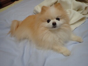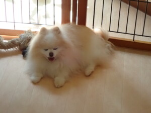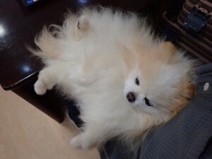 ふじまる君、昨夜はお泊まりでした。のんびりと過ごしていました。
