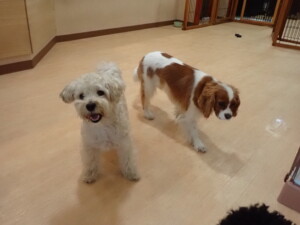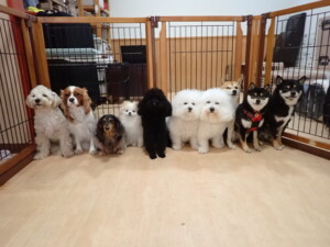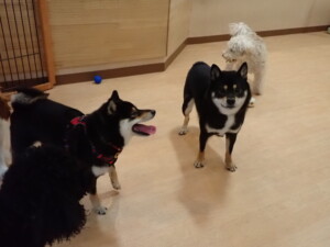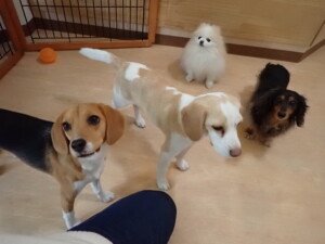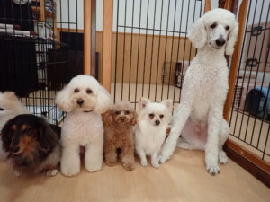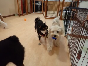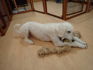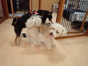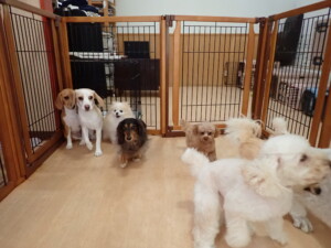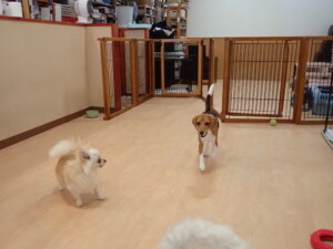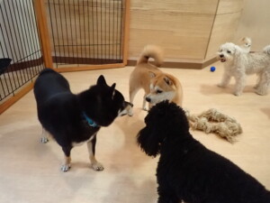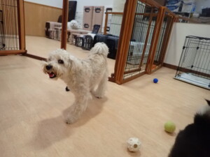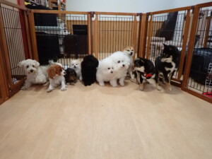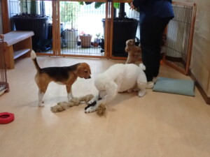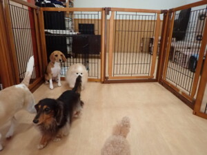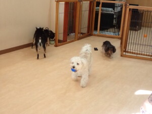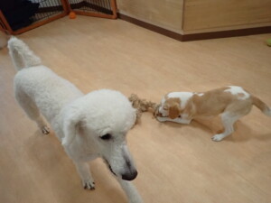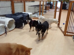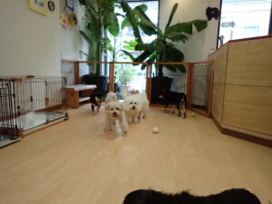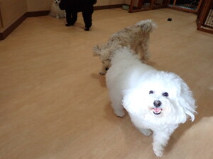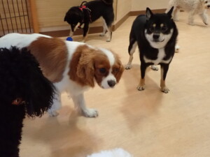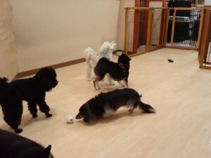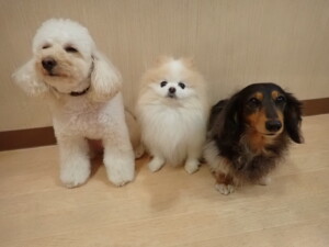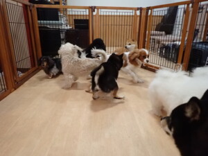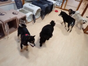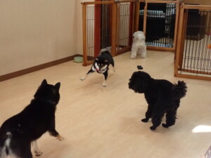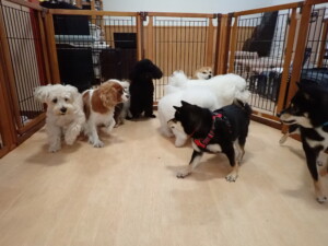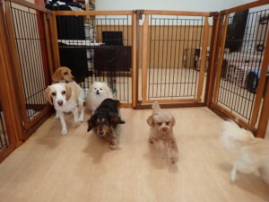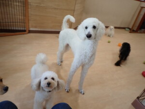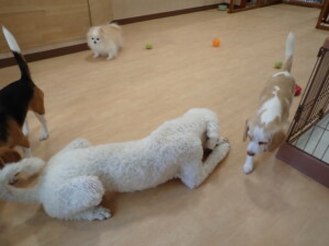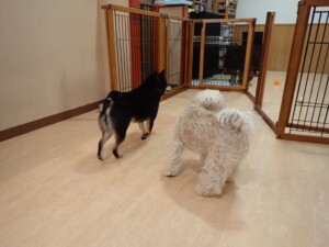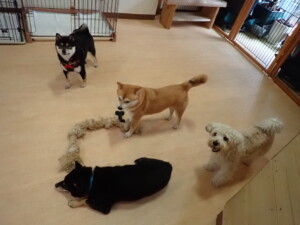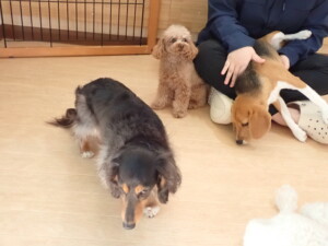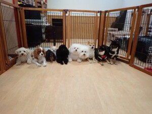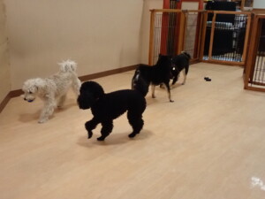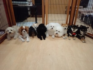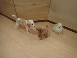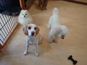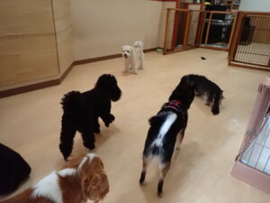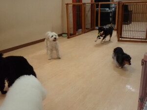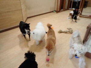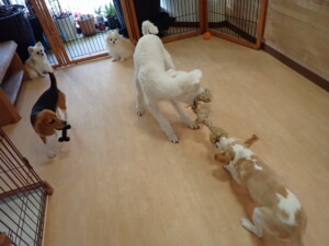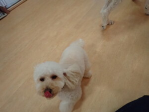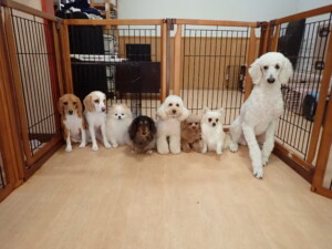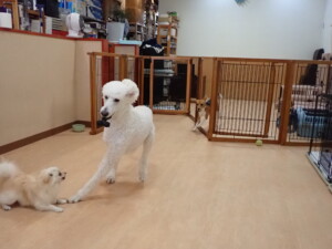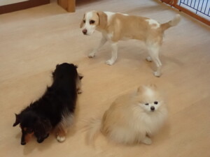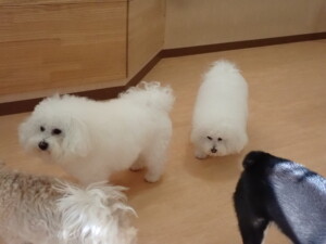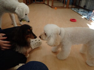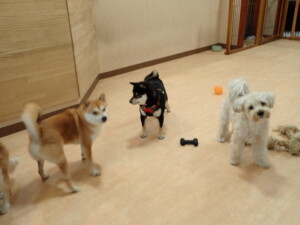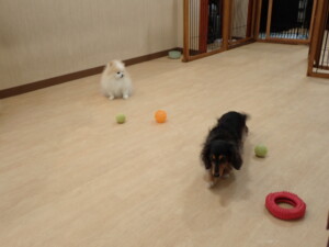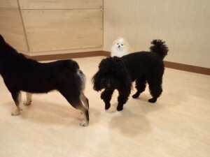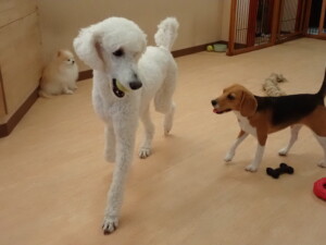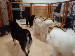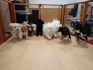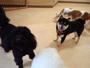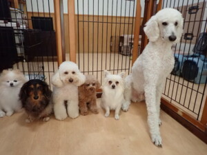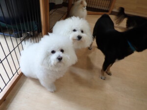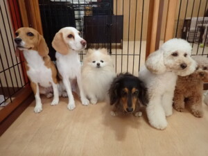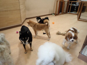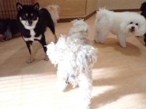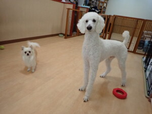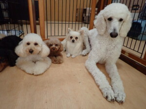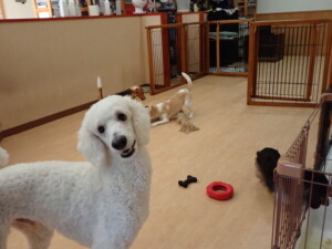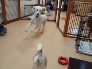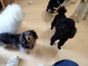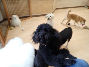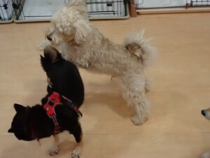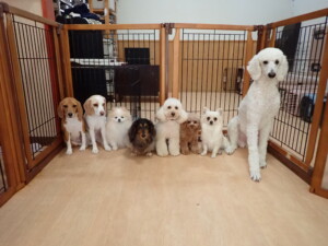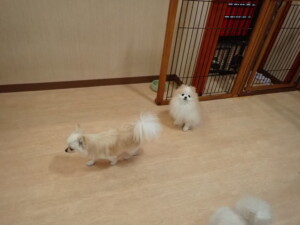トイプードルのモモちゃん、さくらこちゃん、まる君、落ち着いて過ごしていました。ふじまる君、グーちゃん、じゃんぷ君、ミニチュアシュナウザーのももちゃん、あずきちゃん、むぎ君、寛大君、だんご君、ちいこちゃん、メリィちゃん、ポコ君、元気に遊んでいました。ポコ君、「お座り・「フセ」・「マテ」・「オイデ」の練習をしました。