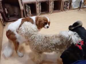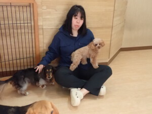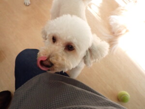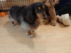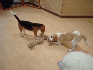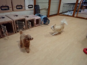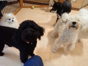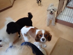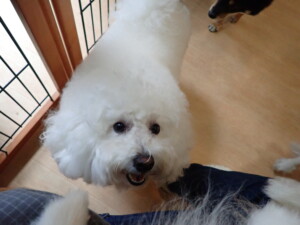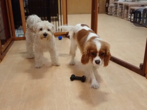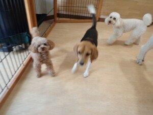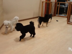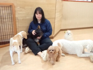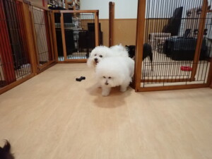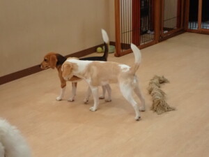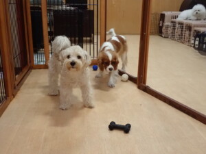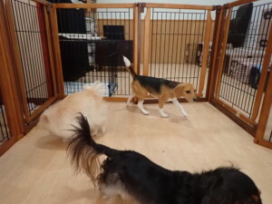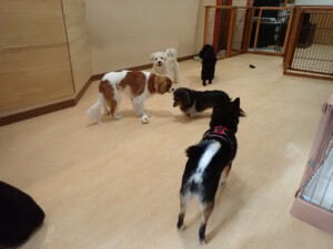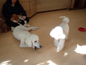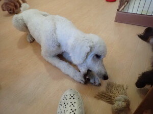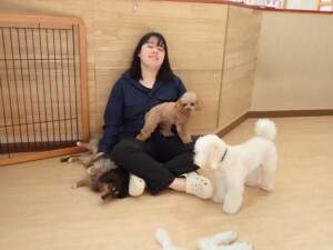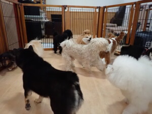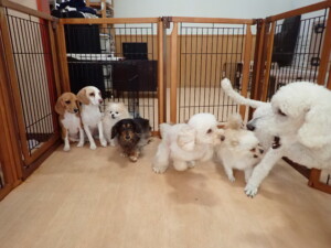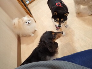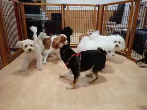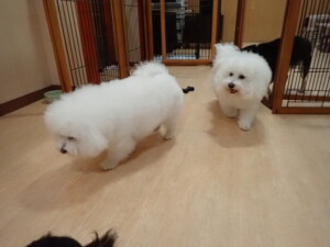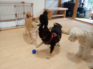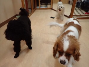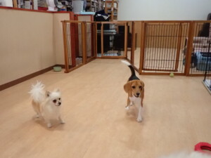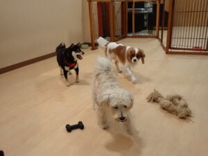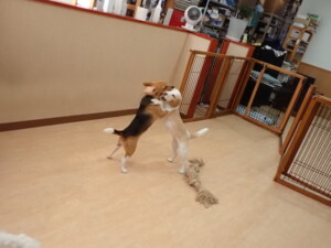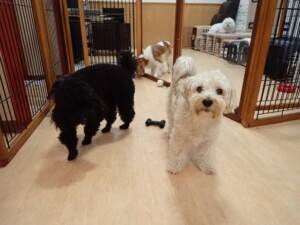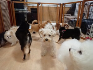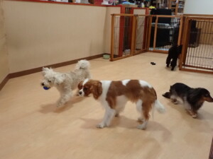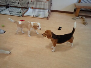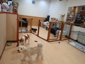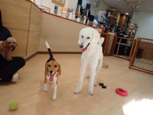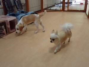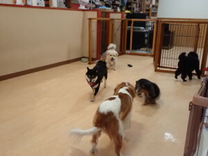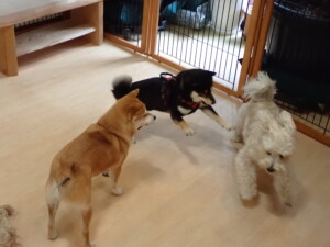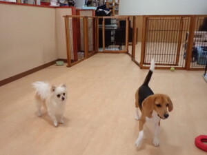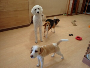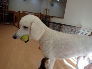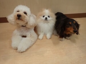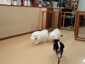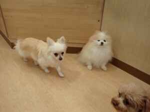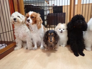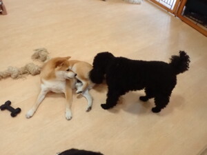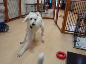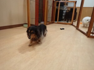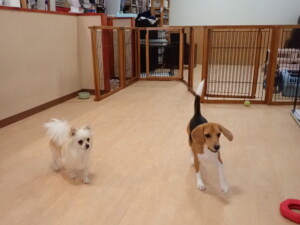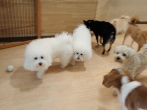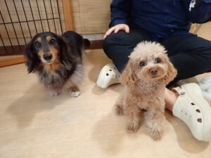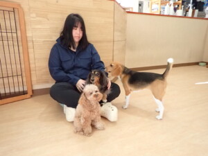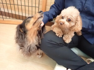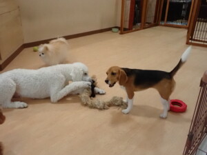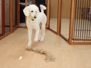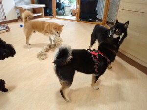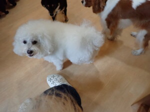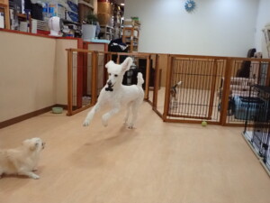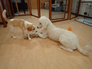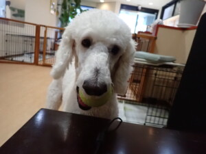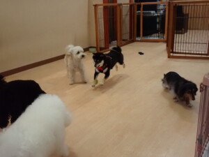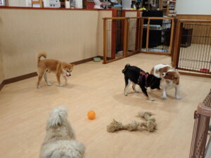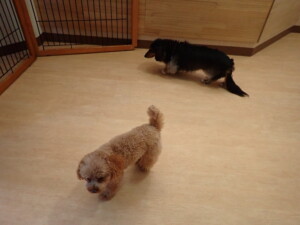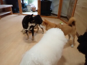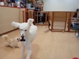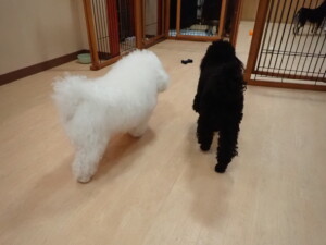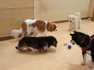 トイプードルのモモちゃん、さくらこちゃん、まる君、落ち着いて過ごしていました。ふじまる君、グーちゃん、じゃんぷ君、ミニチュアシュナウザーのももちゃん、あずきちゃん、むぎ君、寛大君、だんご君、ちいこちゃん、メリィちゃん、ポコ君、元気に遊んでいました。ポコ君、「お座り・「フセ」・「マテ」・「オイデ」の練習をしました。