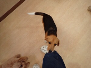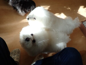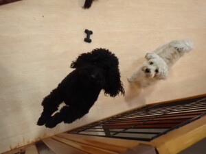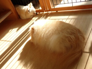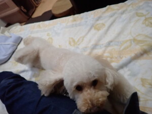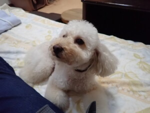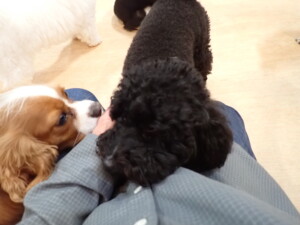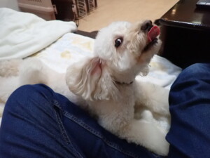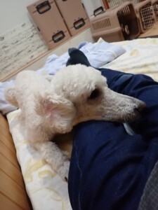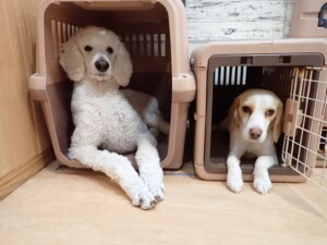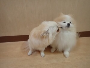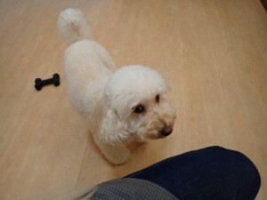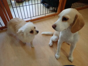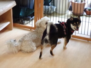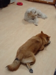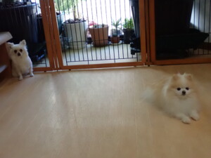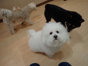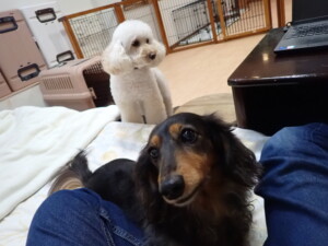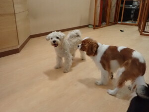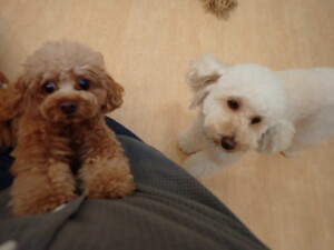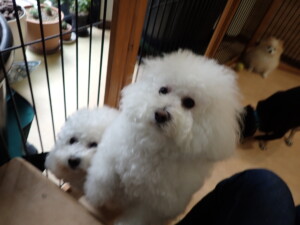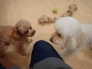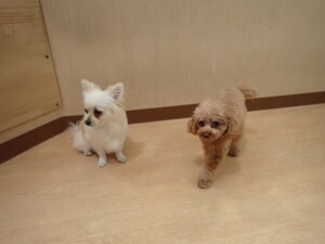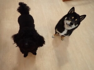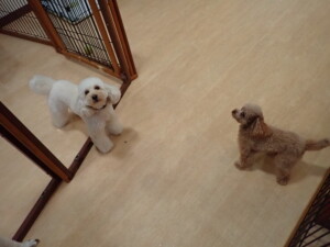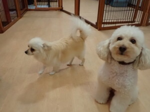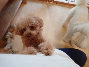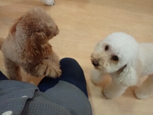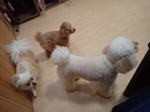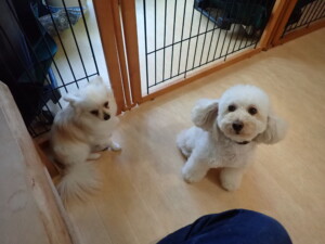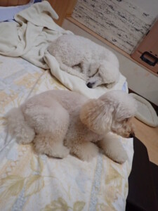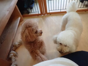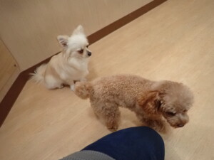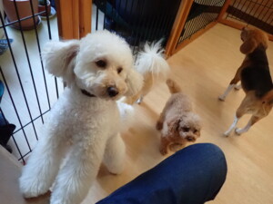 トイプードルのモモちゃんとふじまる君、昨夜はお泊まりでした。どちらも機嫌よく過ごしていました。