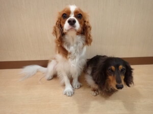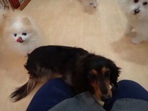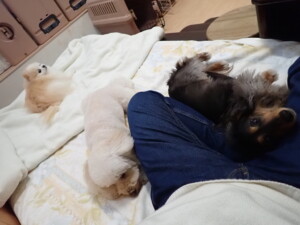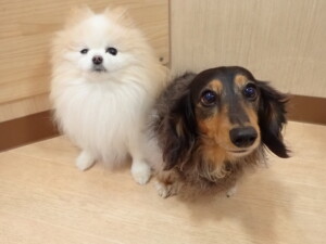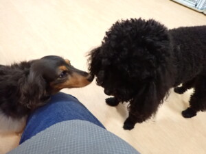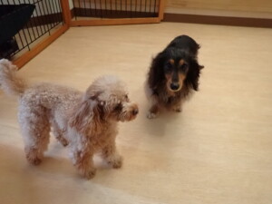 トイプードルのモモちゃんとダックスフントのモモちゃん、昨夜はお泊まりでした。どちらも機嫌よく過ごしていました。