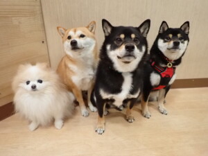 今日はミルちゃん、チャロちゃん、グーちゃん、ダックスフントのモモちゃん、はな子ちゃんが遊びに来てくれました。