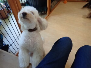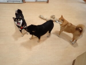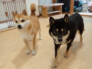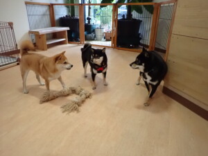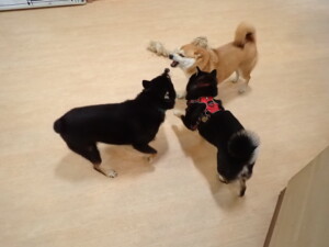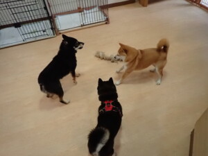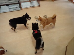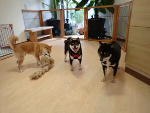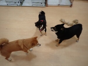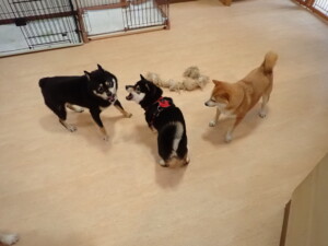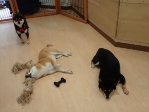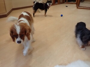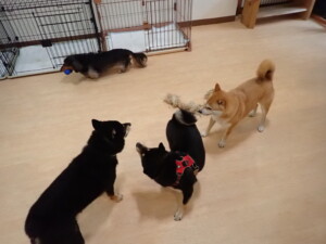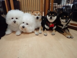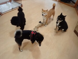 ふじまる君、アメリちゃん、ブブ君、ミルちゃん、ジャズ君、スズちゃん、ポコ君、元気に遊んでいました。ポーちゃん、モカちゃん、落ち着いて過ごしていました。ポコ君、「お座り・「フセ」・「マテ」・「オイデ」と「フセ」→「お座り」の練習をしました。