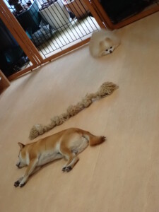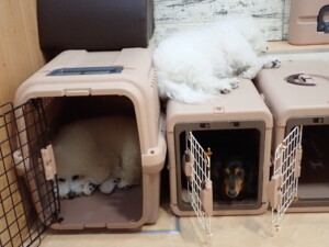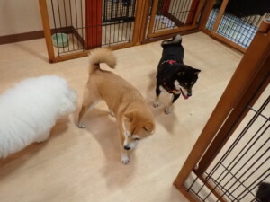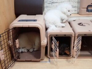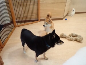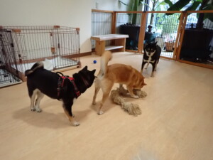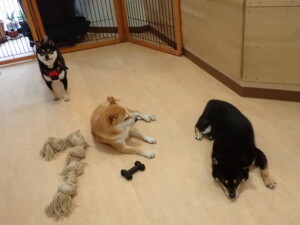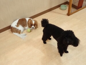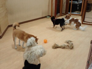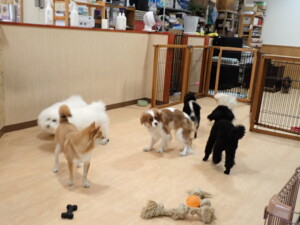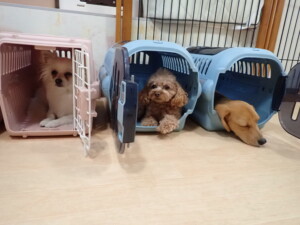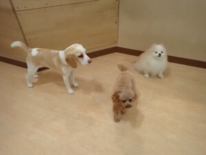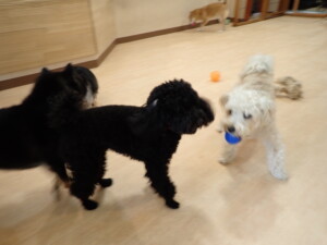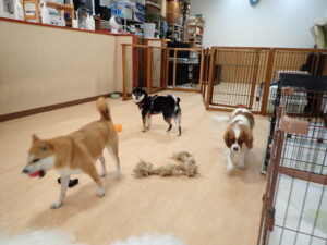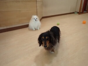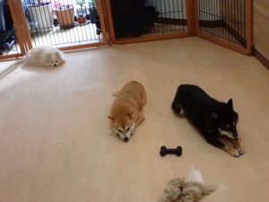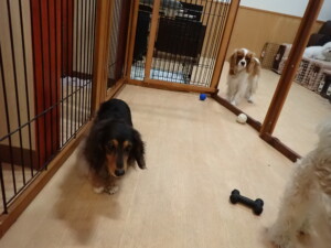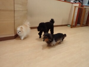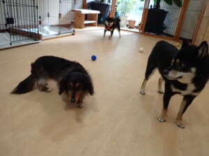 トイプードルのモモちゃん、ダックスフントのモモちゃん、ポーちゃん、落ち着いて過ごしていました。アメリちゃん、もっち君、ブブ君、こげ茶君、スズちゃん、ジュン君、だんご君、元気に遊んでいました。