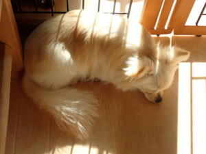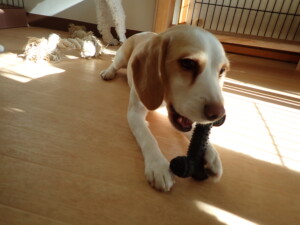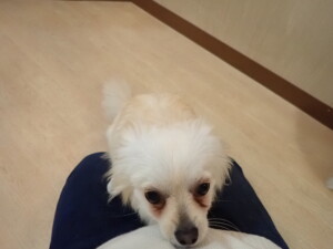 ふじまる君、昨夜はお泊まりでした。機嫌よく過ごしていました。