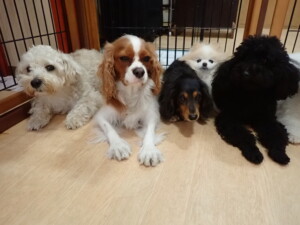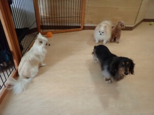 トイプードルのモモちゃん、チャロちゃん、ダックスフントのモモちゃん、落ち着いて過ごしていました。ふじまる君、ミルちゃん、グーちゃん、はな子ちゃん、元気に遊んでいました。