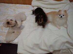 モモちゃん、ふじまる君、だんご君、昨夜はお泊まりでした。みんな機嫌よく過ごしていました。