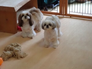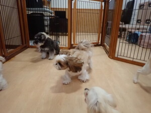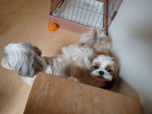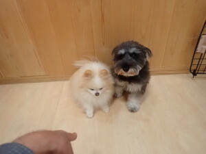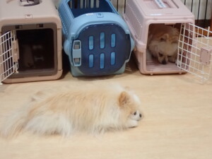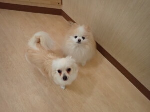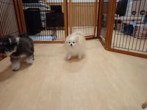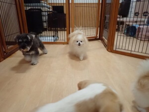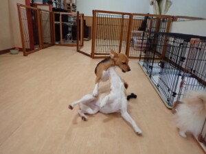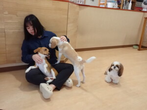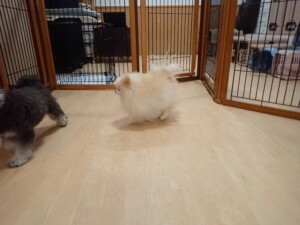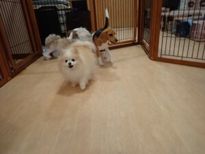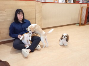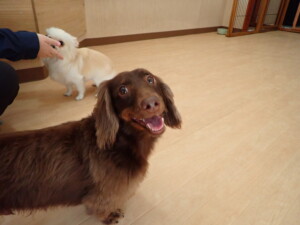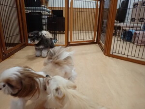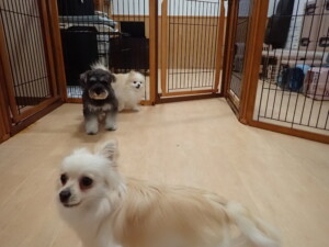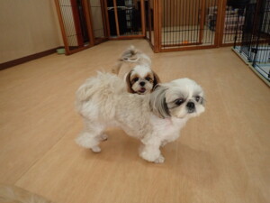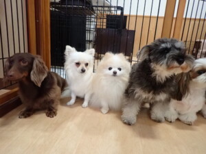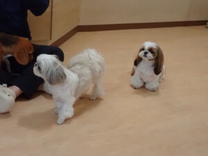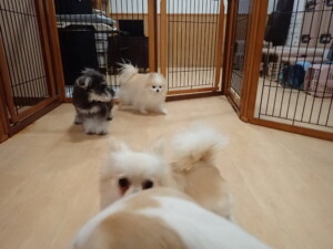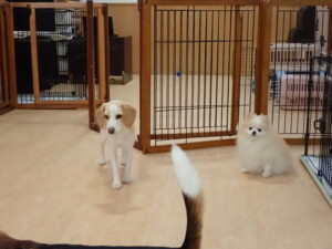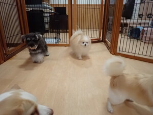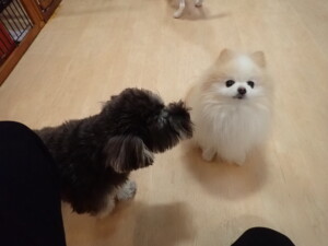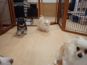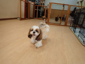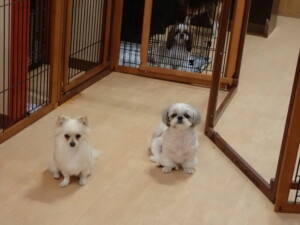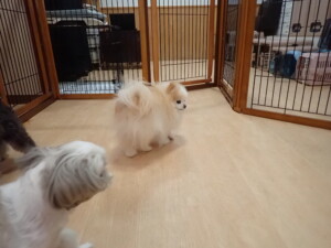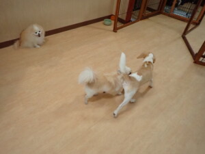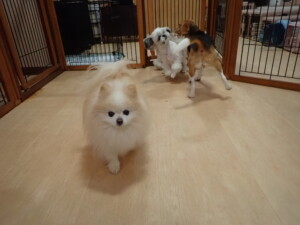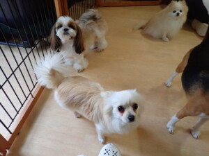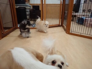 紅葉ちゃん、シェリーちゃん、ピピリーニちゃん、落ち着いて過ごしていました。じゃんぷ君、ミルちゃん、ももちゃん、ポコ君、元気に遊んでいました。ももちゃん、「お座り」・「フセ」・「マテ」・「オイデ」の練習をしました。ポコ君、「お座り」・「フセ」・「マテ」の練習をしました。
