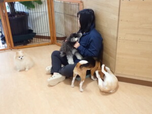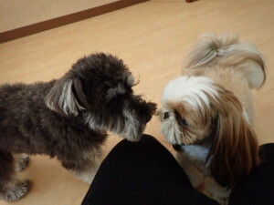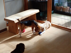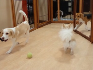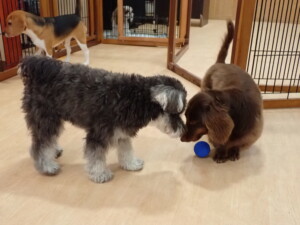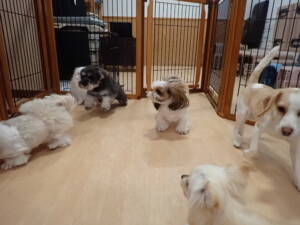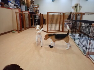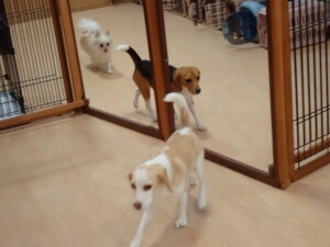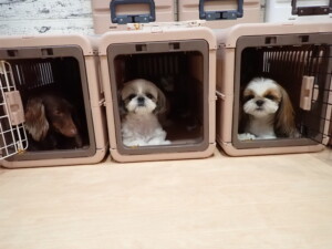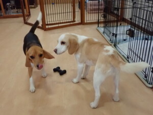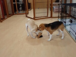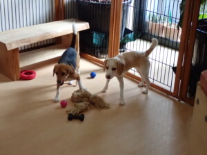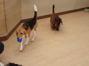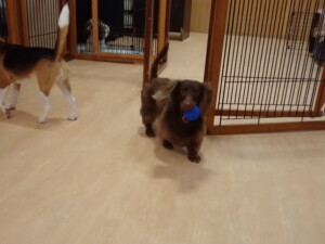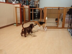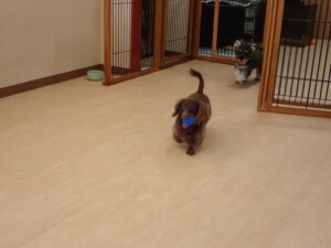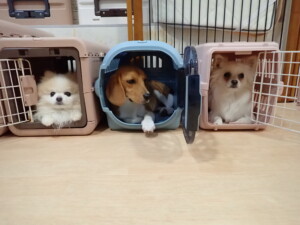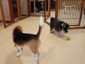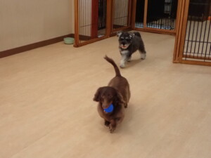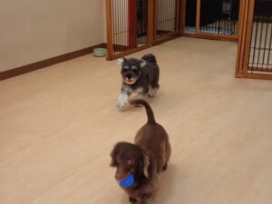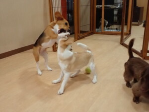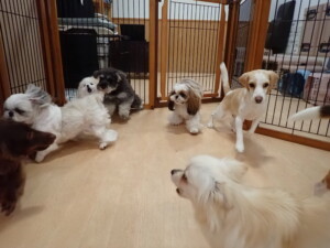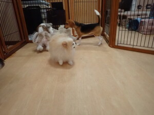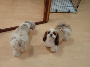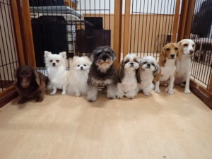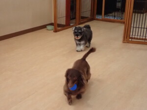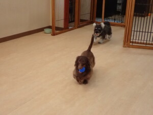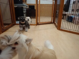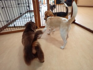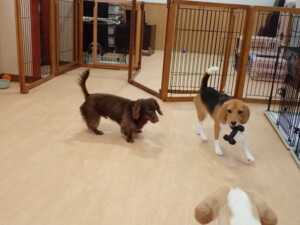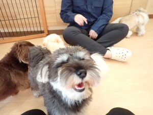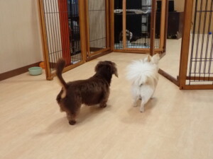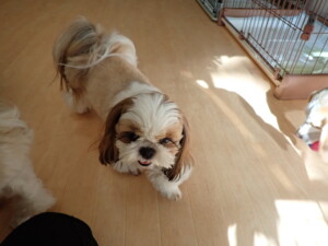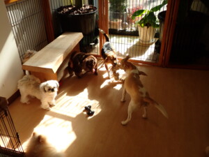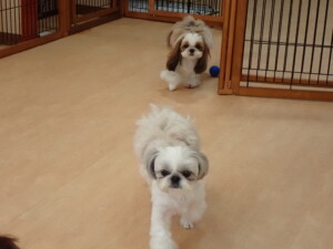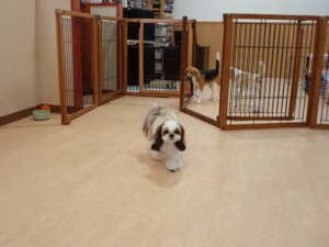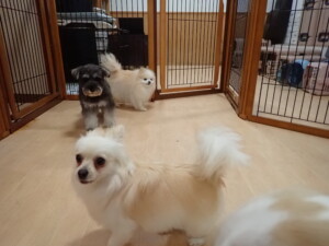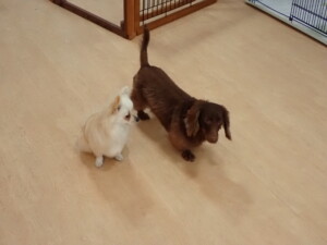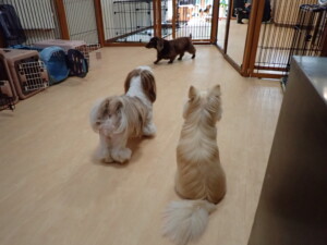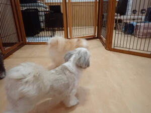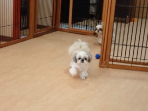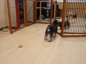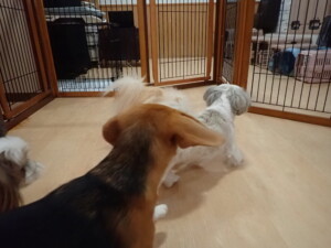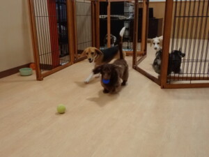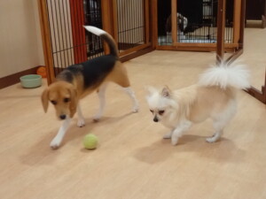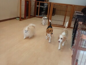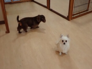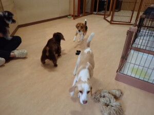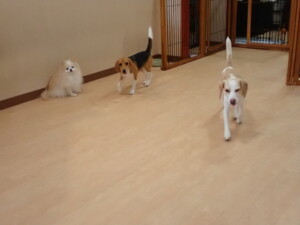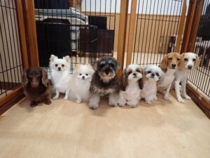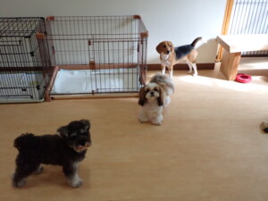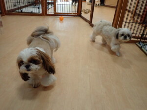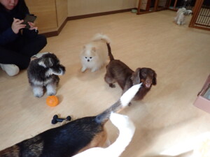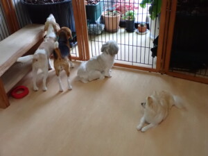 ポーちゃん、ロイ君、紅ちゃん、落ち着いて過ごしていました。ブブ君、アメリちゃん、スズちゃん、ミルちゃん、ジャズ君、ポコ君、ひまわり君、元気に遊んでいました。ポコ君、「お座り」・「フセ」・「マテ」の練習をしました。ひまわり君、「お座り」・「マテ」の練習をしました。
