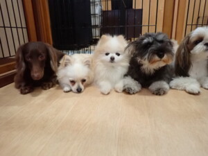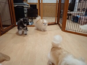 今日はグーちゃん、はな子ちゃん、さくらこちゃん、こげ茶君、うい君、モコ君が遊びに来てくれました。そして、みみちゃん、ももちゃん、ミアちゃんがトレーニングに来てくれました。今日からトレーニングを始めるぴのちゃんも来てくれました。2ヶ月になるトイプードル×ポメラニアンのMIXの女の子です。