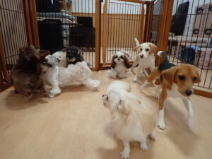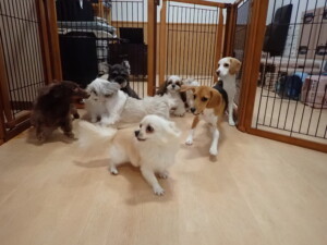 今日はふじまる君、こころちゃん、グーちゃん、二瑚ちゃん、三瑚君、むぎ君、さくらこちゃん、うい君が遊びに来てくれました。そして、ミアちゃんがトレーニングに来てくれました。