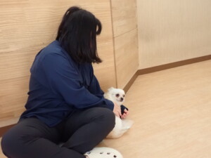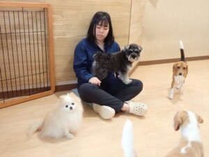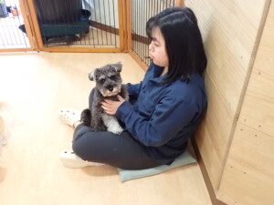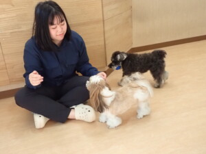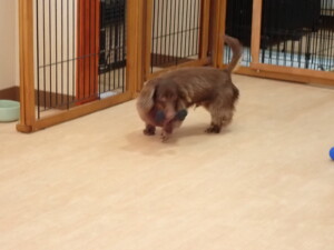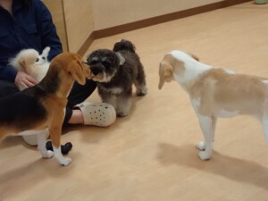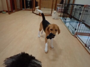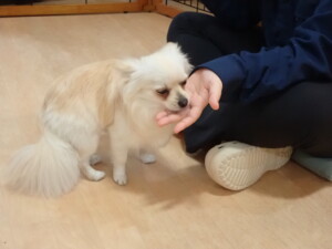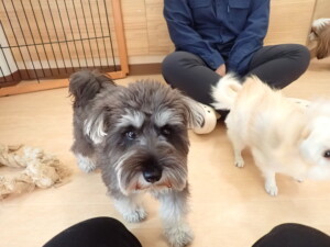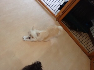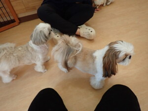 紅葉ちゃん、こころちゃん、二瑚ちゃん、さくらこちゃん、落ち着いて過ごしていました。ふじまる君、グーちゃん、三瑚君、むぎ君、うい君、ミアちゃん、元気に遊んでいました。ミアちゃん、「お座り」・「フセ」・「マテ」・「オイデ」の練習をしました。