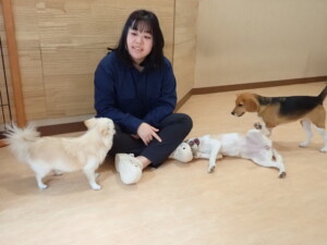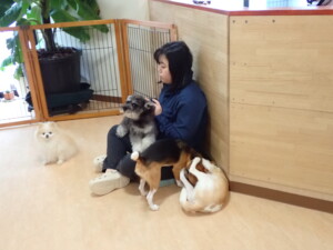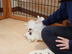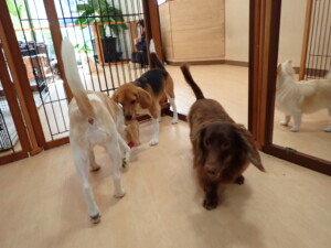 紅葉ちゃん、アビーちゃん、ハルちゃん、はな子ちゃん、ももちゃん、ミアちゃん、元気に遊んでいました。チャロちゃん、落ち着いて過ごしていました。ももちゃんとミアちゃん、「お座り」・「フセ」・「マテ」・「オイデ」の練習をしました。