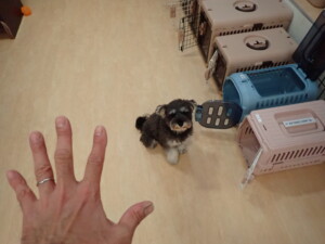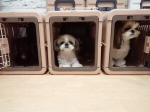 ココちゃん、ポーちゃん、ミコルちゃん、落ち着いて過ごしていました。アメリちゃん、ブブ君、こげ茶君、ココア君、スズちゃん、元気に遊んでいました。ミコルちゃん、「お座り」・「マテ」の練習をしました。