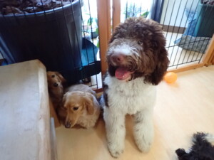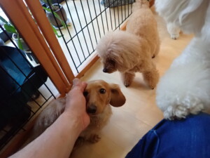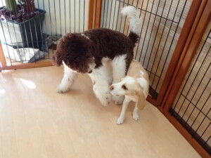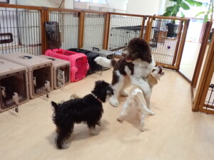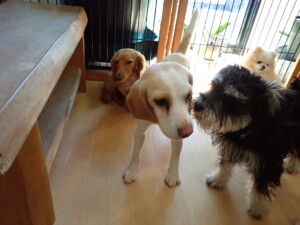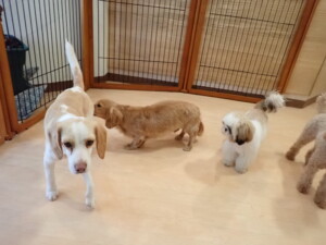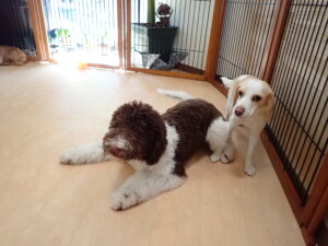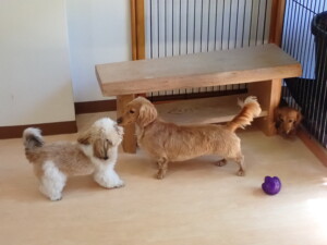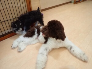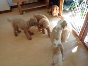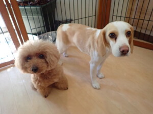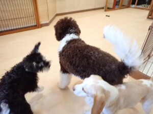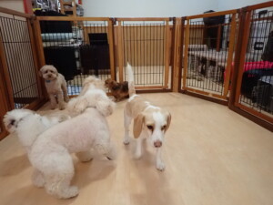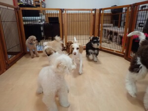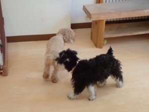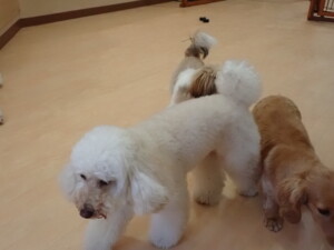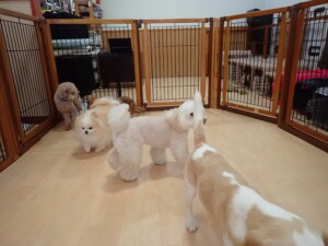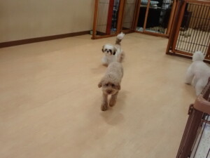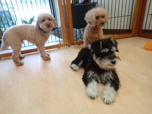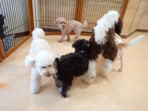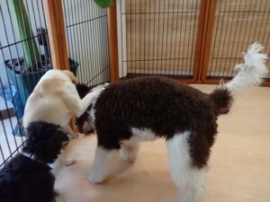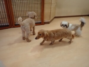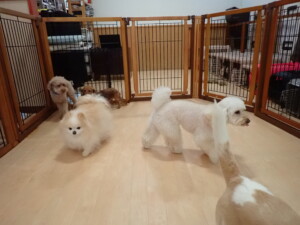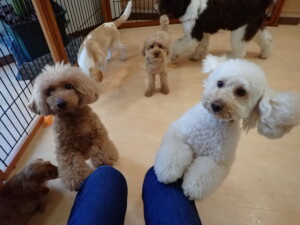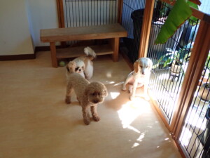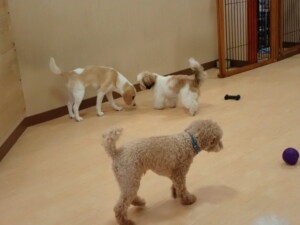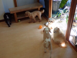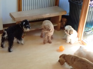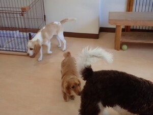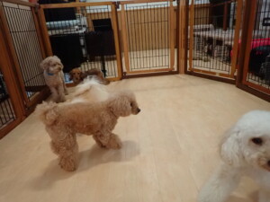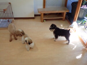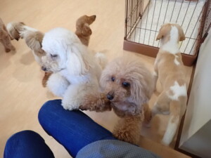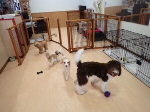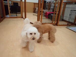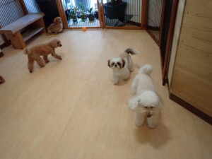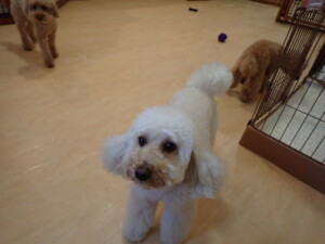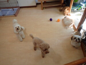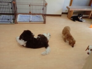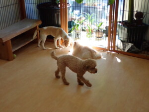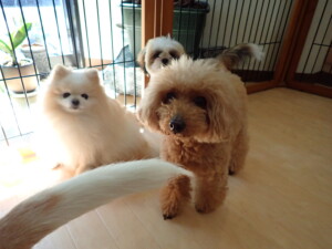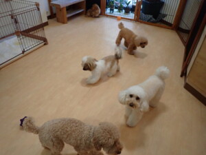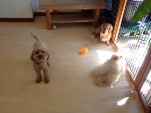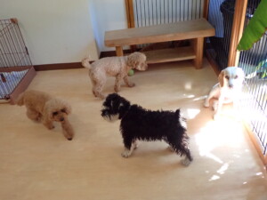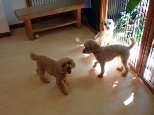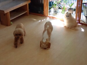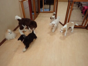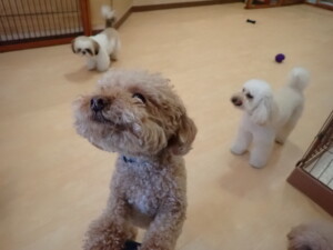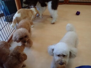ポーちゃん、落ち着いて過ごしていました。ブブ君、ミルちゃん、モコ君、ぴのちゃん、アメリちゃん、ポコ君、こげ茶君、スズちゃん、トイ君、種ちゃん、元気に遊んでいました。トイ君、「お座り」・「フセ」・「マテ」・「オイデ」・「ハウス」の練習をしました。種ちゃん、「お座り」・「フセ」・「マテ」の練習をしました。トイ君、今日でトレーニング卒業です。