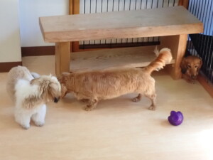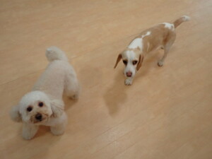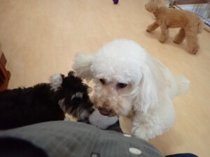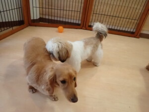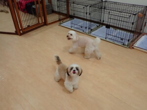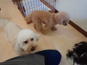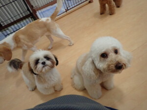 まりもちゃん、二瑚ちゃん、ソラ君、ももちゃん、落ち着いて過ごしていましたグーちゃん、トイ君、種ちゃん、トイ君、「お座り」・「フセ」・「マテ」・「オイデ」・「ハウス)・の練習をしました。タムちゃん、元気に遊んでいました。種ちゃんとタムちゃん、「お座り」・「フセ」・「マテ」の練習をしました。