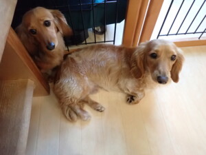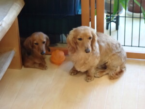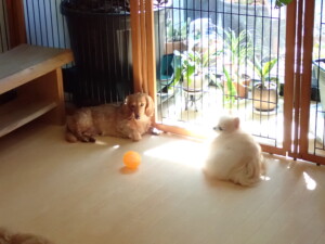モコ君、だんご君、まる君、紅葉ちゃん、メリィちゃん、、種ちゃん、タムちゃん、元気に遊んでいました。チャロちゃん、落ち着いて過ごしていました。種ちゃんとタムちゃん、「お座り」・「フセ」・「マテ」の練習をしました。